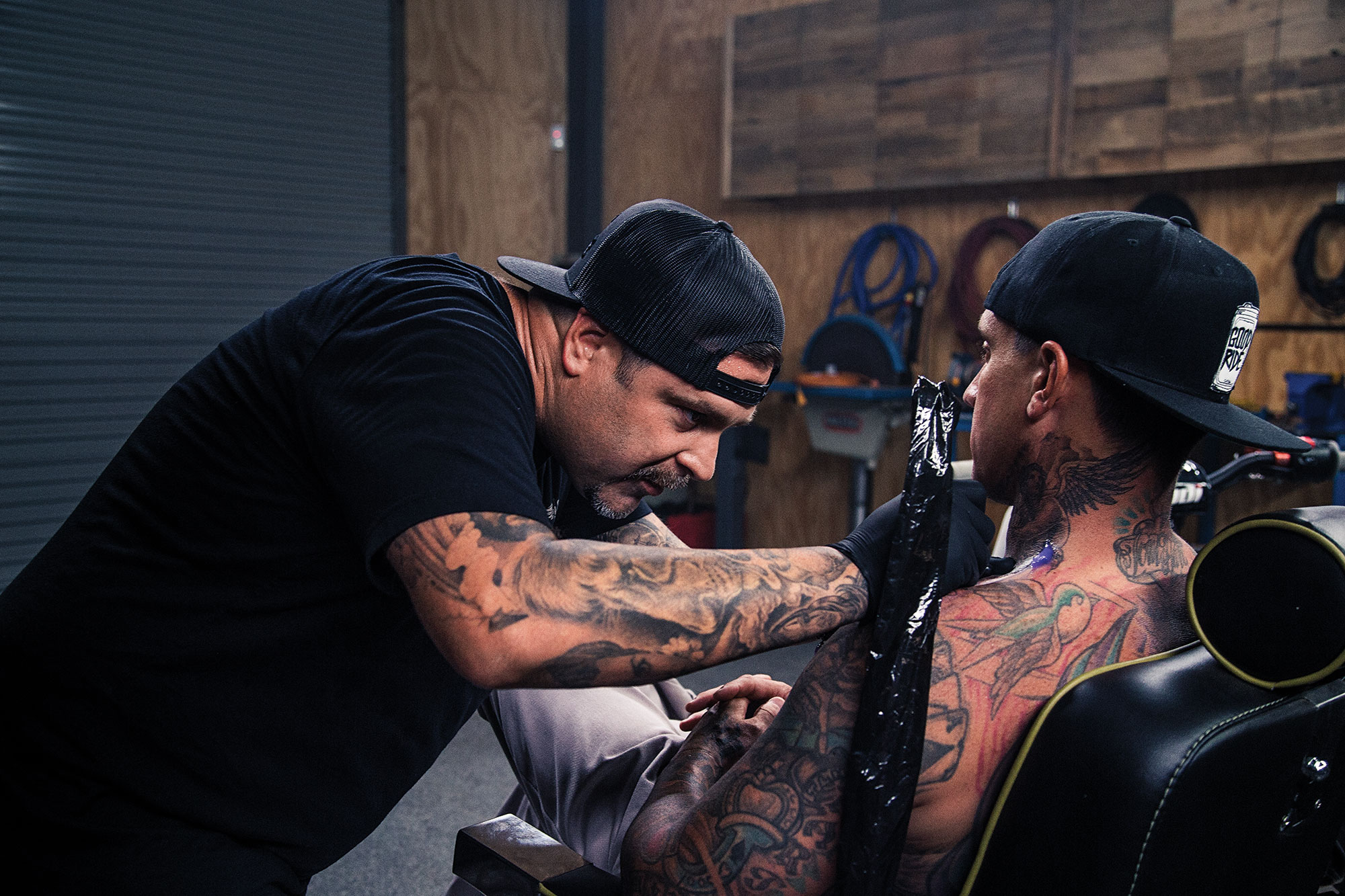 這個瘋狂的想法是來自於Carey,他將騎乘Indian重機時燒胎過後所產生的粒子收集起來,當做刺青墨水的顏料,並且在他的左肩上刺上他最近才出生的兒子名字,透過這樣的方式將他的機車、兒子與他自己永遠聯結起來,並且讓全世界都看到。