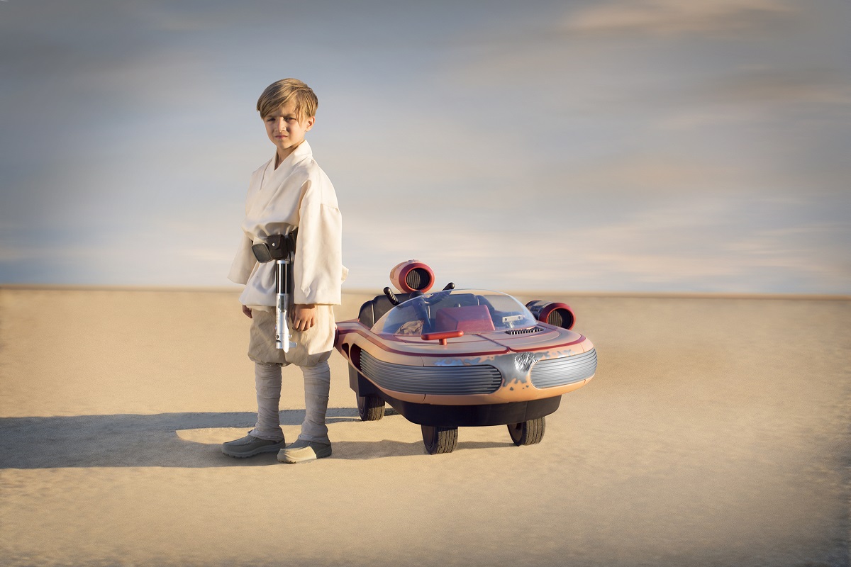 在電影「星際大戰」中,「路克.天行者」是大家所喜愛的主角,而他的父親「安納金.天行者」也就是大家所熟知的黑武士。在各式各樣的星際飛艇中,「路克.天行者」的LANDSPEEDER是由他親自維修保存的,雖然最後為了籌措費用而賣出,但是簡單的外型還有男主角的加持,成為星戰電影中別具意義的飛船之一。玩具商Radio Flyer相中這點,以LANDSPEEDER的外型製作一輛電動童車,讓小朋友也能一圓星戰夢。