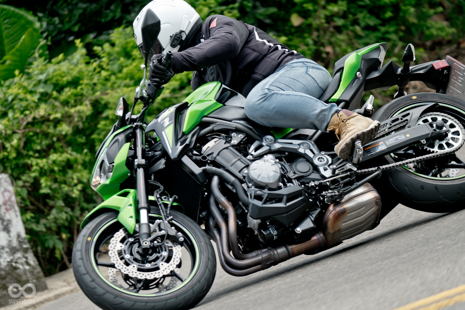 在高速彎中,Z900就像是騎士手腳的延伸,能清晰地感受到前後輪的回饋,讓騎士清楚的知道與極限之間的距離,收油、煞車、快速傾倒一氣呵成,雖然軸距的比起Z800長了5mm,但整體的操控卻更得心應手,彎道中雖心所欲的手感就像是台小排氣量的fun bike,但出彎補油的瞬間,澎湃的動力又提醒著它不容小覷的身份。