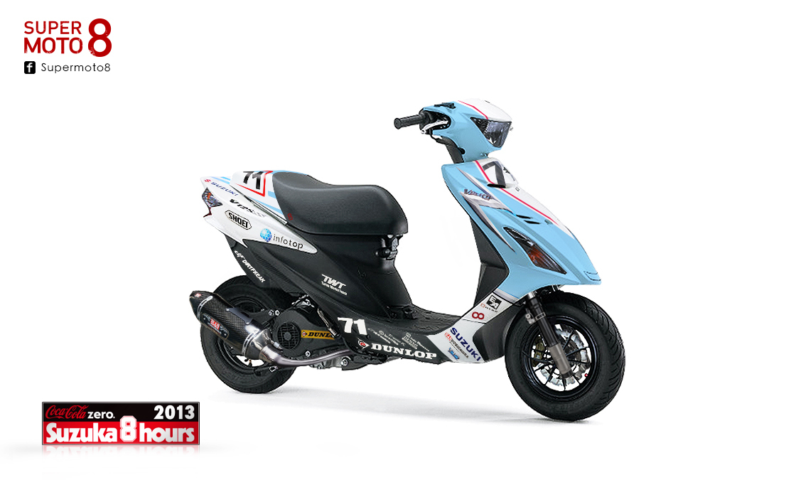 Address一直是台很有日本風味的鋼砲小車,但是原廠外型還是偏向保守。經過換掉前後框、前避震器、去掉後扶手土除、加上單座蓋,當然車身彩繪也不能放過,讓SUZUKI MotoGP塗裝與八耐塗裝原汁原味呈現在Address ss的車上,最後裝上一支吉村碳纖維管,跑格升級的Address ss展現在你眼前!