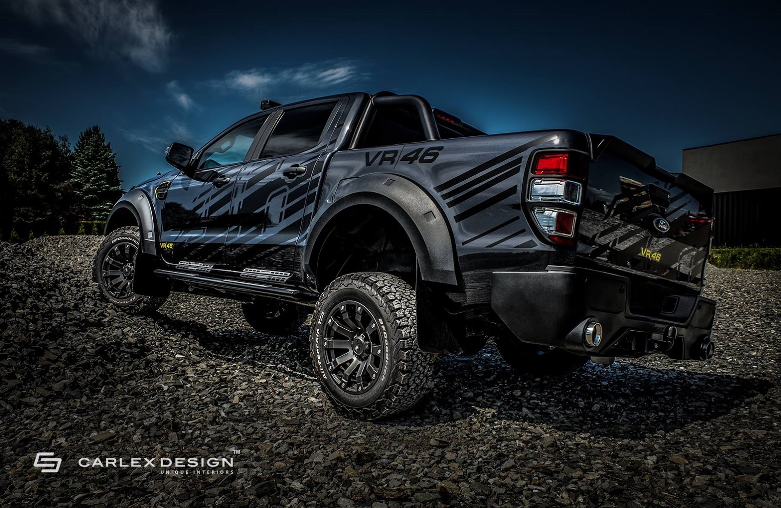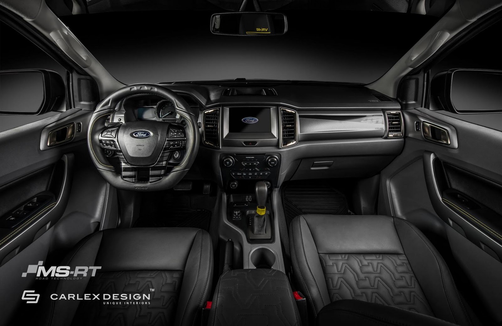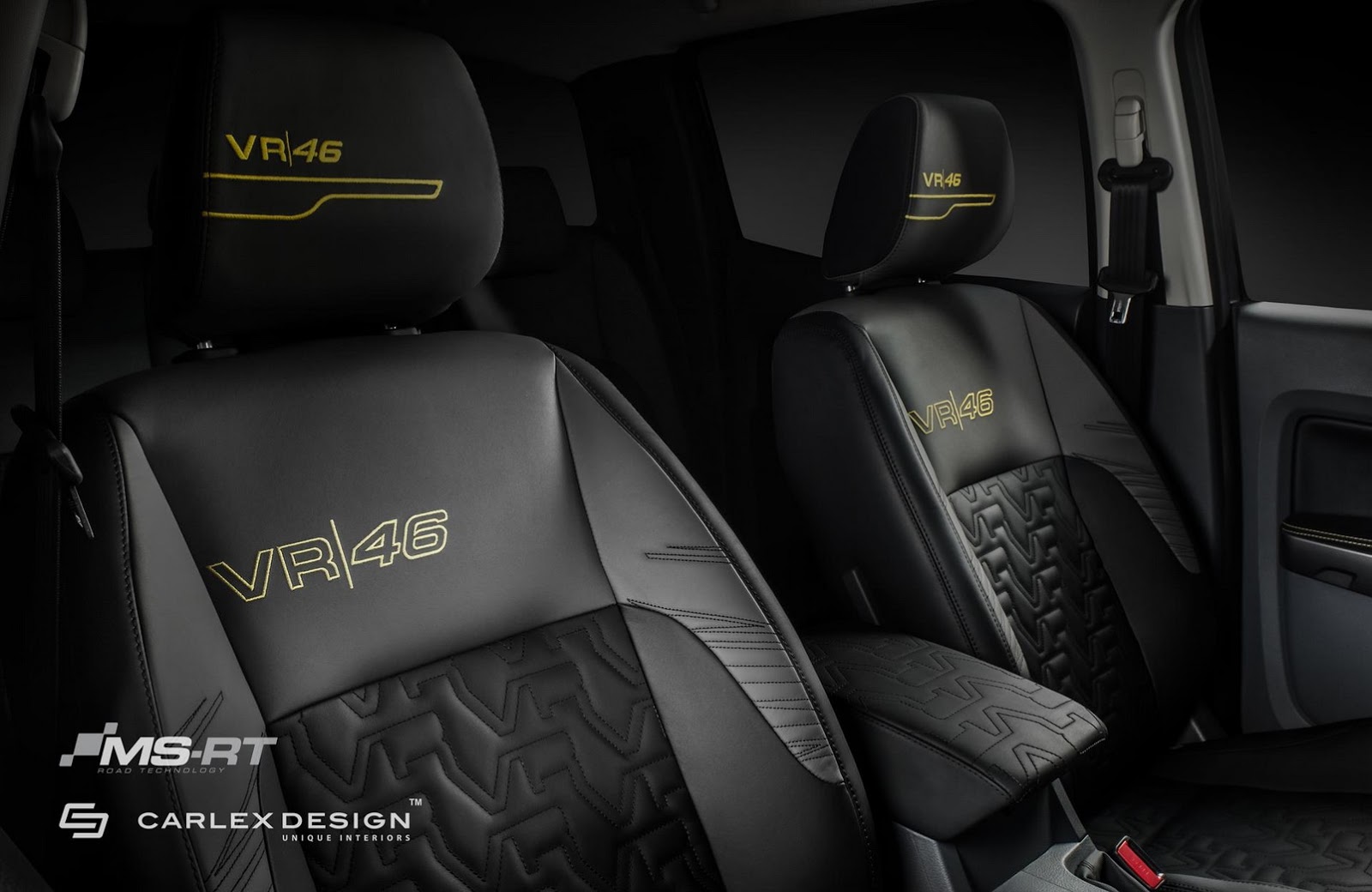 Ford Ranger是一輛針對北美市場以外所設計的貨卡,所以在車身尺寸上比起F-150小巧許多。這次由兩家公司聯手改造了Ranger,首先從內裝來看,車身座椅、方向盤等多處選用了Nappa皮革,增加車內質感氛圍。另外,飾板部分刻意改用黑色塗裝,注入些神秘感;其中最重要的VR-46標誌以及專屬黃色,在車內多處也能看到。