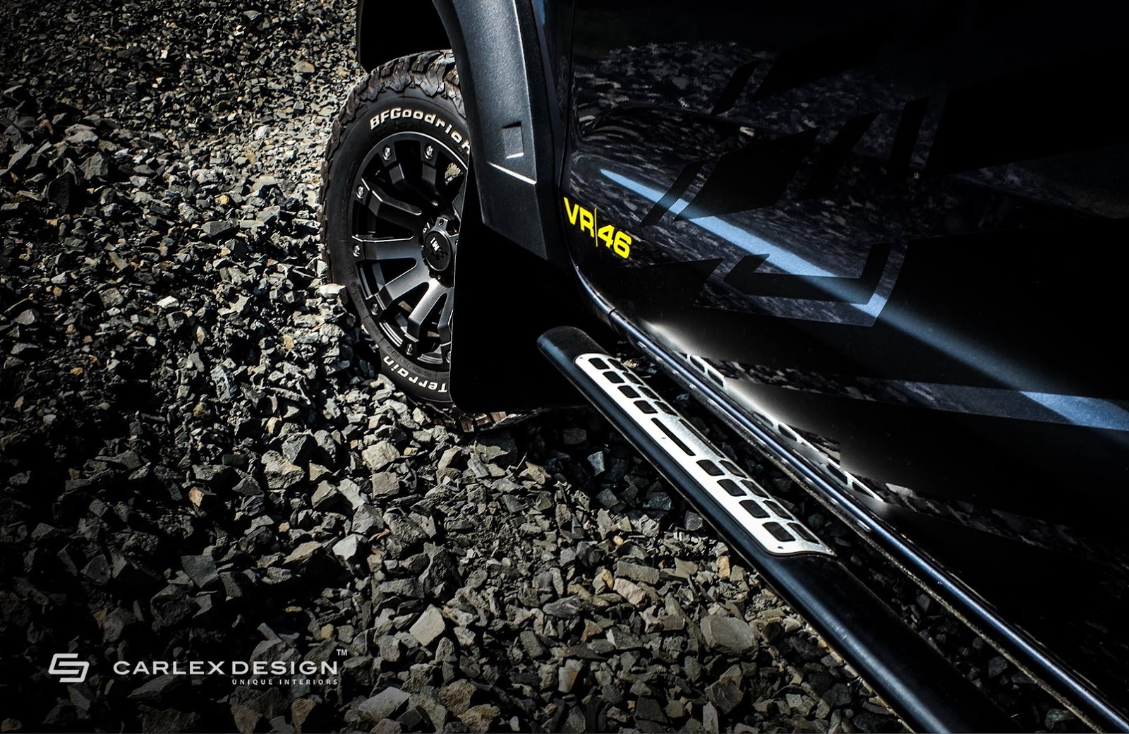 外觀部分,有專屬的前、中、後保桿與空力套件,讓原本粗獷的貨卡添加些運動感。前水箱護罩與車頂安裝LED探照燈,用意是在夜晚能有最佳照明,越野不分晝夜。懸吊換上改裝部品,加高車身高度,並且配備BFGoodrich越野性能胎,如虎添翼的在砂石路面上奔馳。
