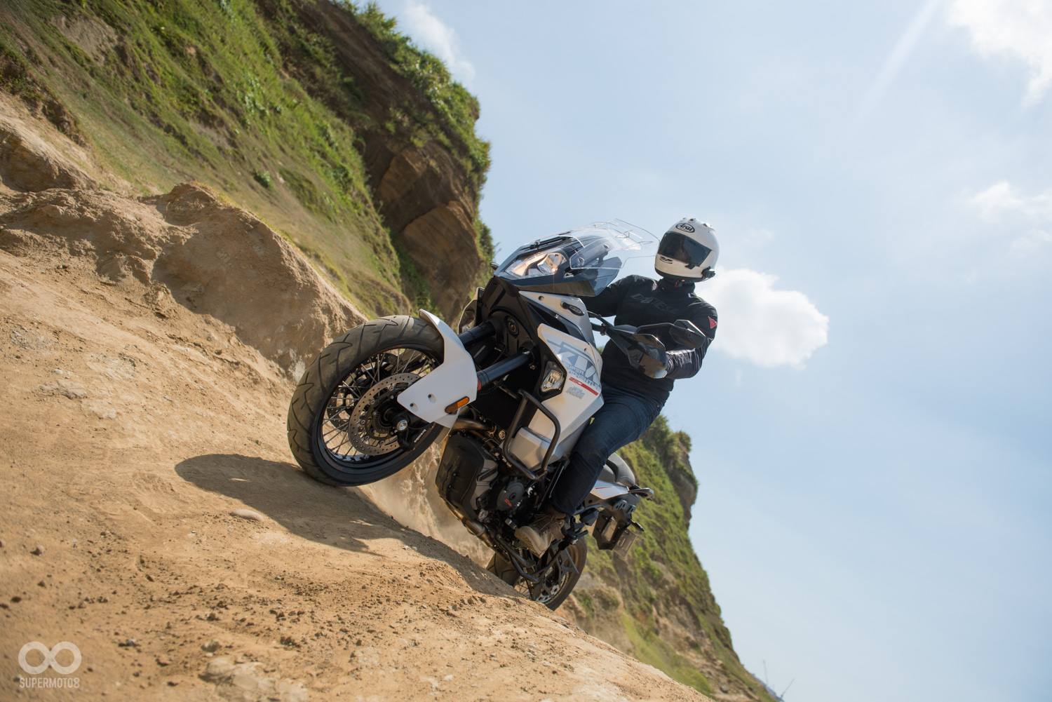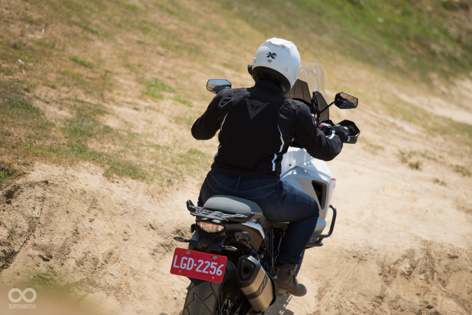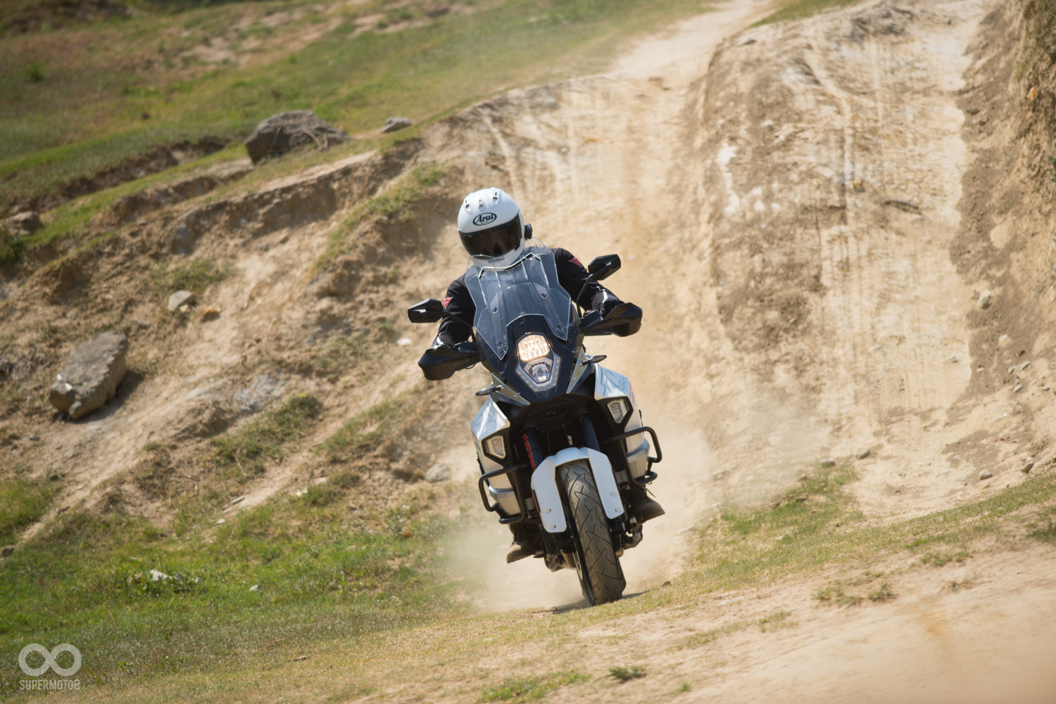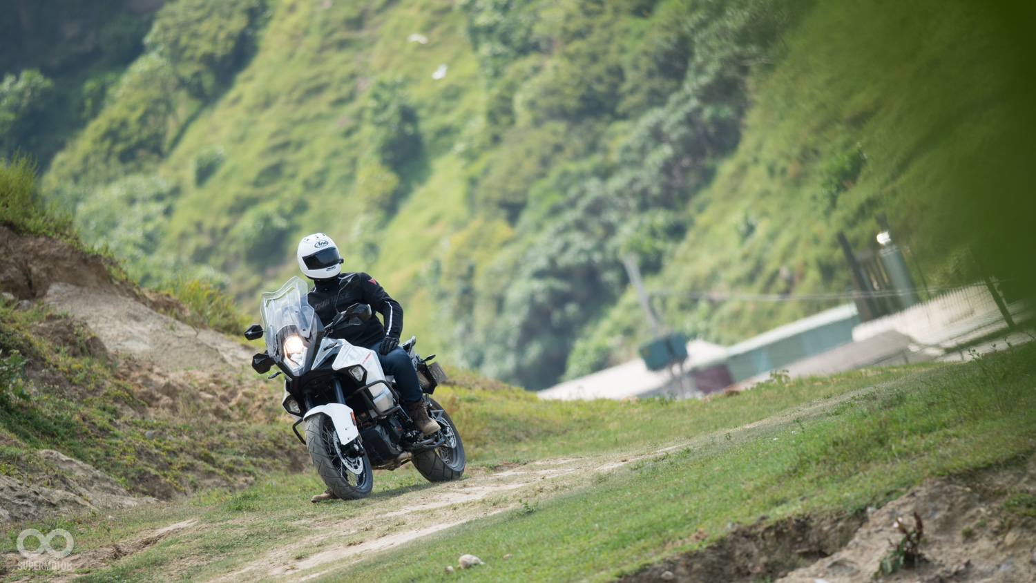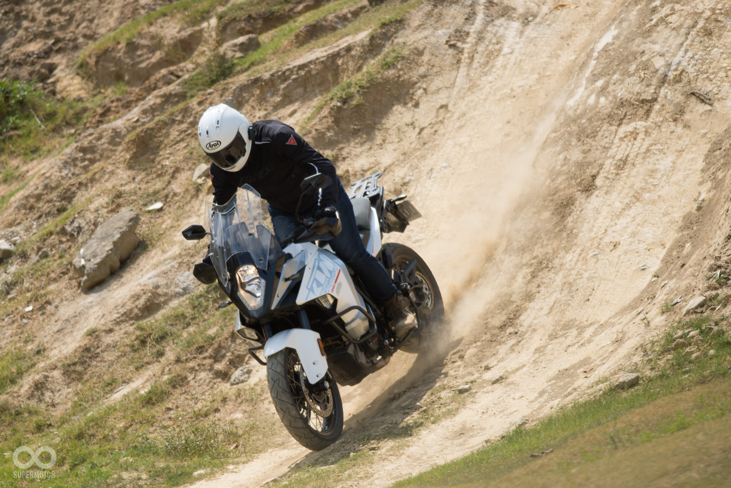 就在我逐漸掌握Super Adventure在土路上的動態時,攝影師出了道難題,指了指前方那近60度的陡坡,示意我衝上去,待了半響牙一咬補了油門,一鼓作氣的成功攻上土坡,但上去了之後才發現騎虎難下,土坡後頭沒路只能沿著原路折返,站在土坡邊上一陣天人交戰,抓緊了車把一躍而下,優異的懸吊吸收了大部分的衝擊,沒有多餘的偏擺安穩落地,雖說有些驚魂未定,但更多的是難以言喻的成就感。