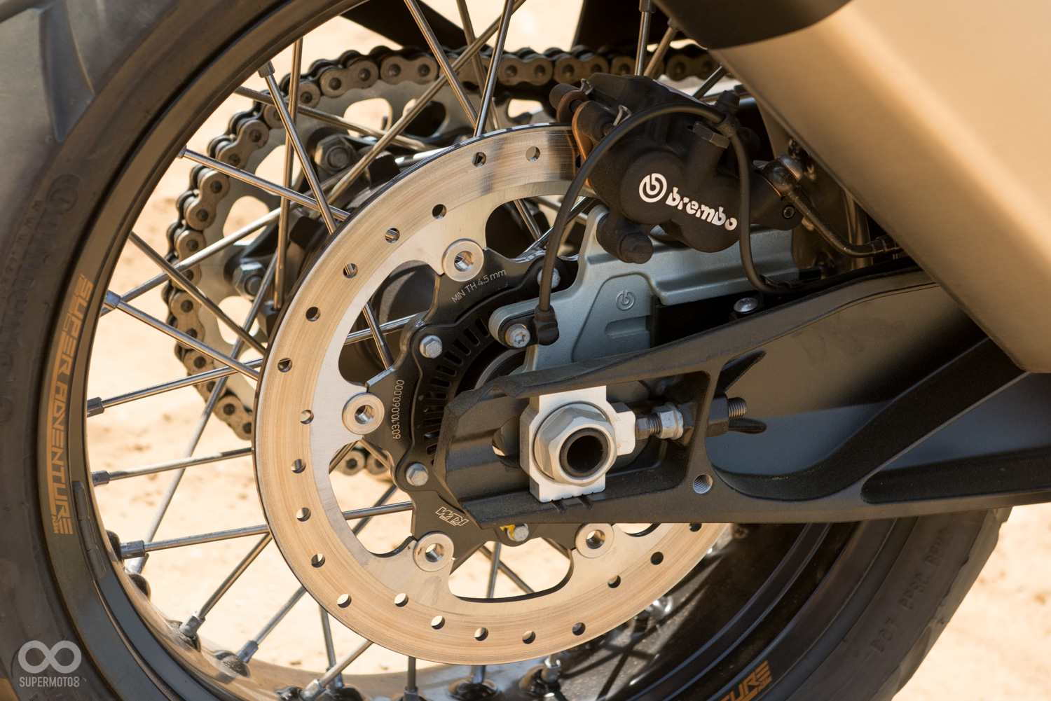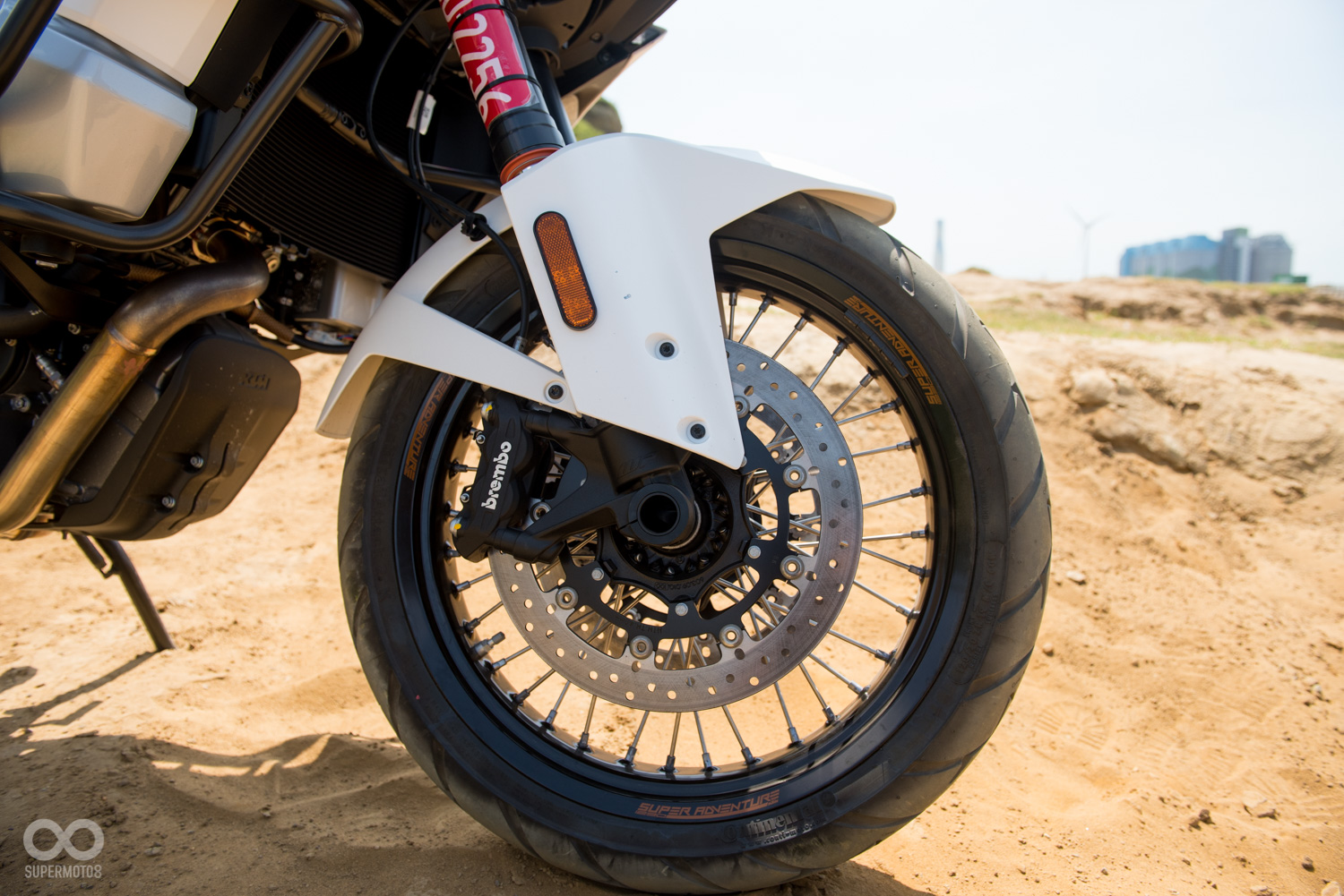 而在輪匡配置方面1290 Super Adventure延續了上一代的前19後17無內胎鋼絲匡設計,除了擁有更佳的吸震能力,在越野路段行駛時穩定性也更好,除此之外KTM也特別為Super Adventure裝上了胎壓偵測系統,讓車主能隨時地掌控胎壓,制動配置上前端使用Brembo輻射卡鉗搭配320mm浮動碟,後頭同為Brembo所生產的單向雙活塞卡鉗搭上268mm浮動碟,加上ABS加持煞車充足、穩定且讓人放心。