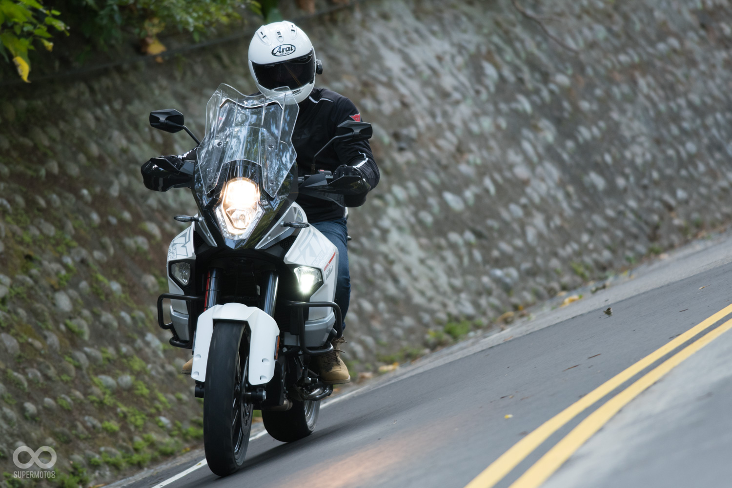 與多數新款的多功能車相比,1290 Super Adventure在操控的回饋上硬派許多,重心偏高加上懸吊形成較長,就算將阻尼切換到SPORT模式,在過彎時還是需要多花費些心力在維持路線上,但隨著漸漸習慣車輛的調性,那輕快的翻轉能力與略帶機械感的操控回饋卻能帶給駕駛許多樂趣,加上傾腳極限深不見底,往往能跑出一些不曾想過的美妙路線。