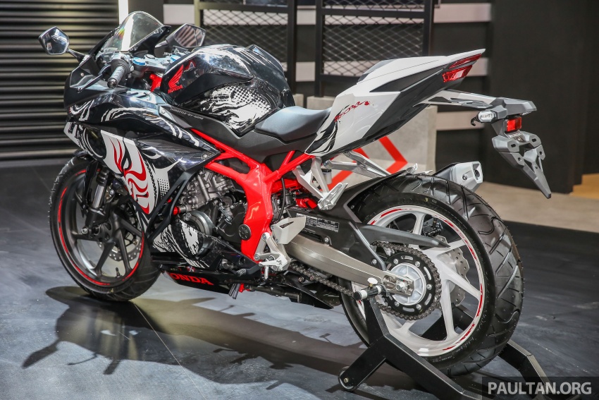 全車以歌舞伎表演時會使用的顏色為主軸,車架漆上紅色,前後輪框各為黑白色,前倒叉外管改成黑色。至於性能則和一般版本相同,沒有改變。歌舞伎特仕版全部限量100台,只在印尼販售。不過CBR250RR至今也只有日規水貨能成功掛牌,所以無論限不限量,我們都無需太扼腕,是吧?