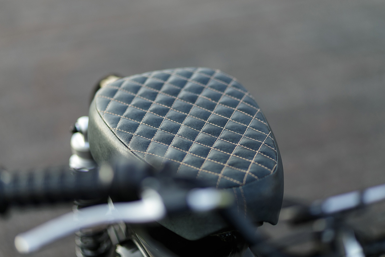 車輛的動力來自一顆PANASONIC SANYO 的12kW鋰電池,藏在重新縫製的菱格紋座墊底下,後輪的2000kw輪轂式馬達對這顆電池來說有點太大了,所以他們將電流上限設置在35%,防止系統負荷超載。
