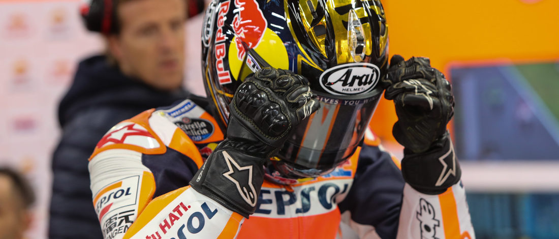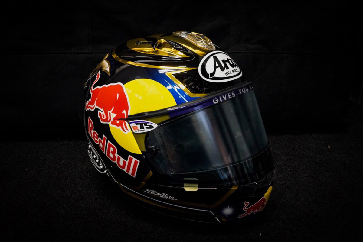雖然正賽時因氣候因素,Pedrosa沒有穿戴上這特別的手套和車靴,但安全帽倒是上場亮相,只是最後因為安全問題讓他決定中途棄賽,所以這套新彩繪的裝備曝光機會並不多,我們就盡點棉薄之力,幫他宣傳一下,也希望他在剩下的比賽都能有好成績。