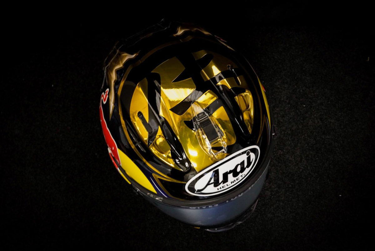 這個更新包含了Pedrosa 頭上的ARAI 安全帽和ALPINESTAR手套、車靴。首先,ARAI 將他個人專屬的”侍”彩繪換成具有肅殺之氣的鬼面武士,頭頂的”侍” 漢字也改以金色烤漆呈現,一改過去Baby Samurai、Little Samurai 的可愛風格。