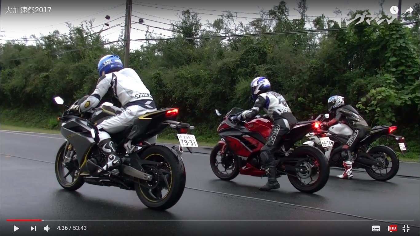 讓我們從最小排氣量的250開始,參賽車輛為目前最受年輕人喜愛的YAMAHA R25,HONDA CBR250 RR及 KAWASAKI Ninja 250。