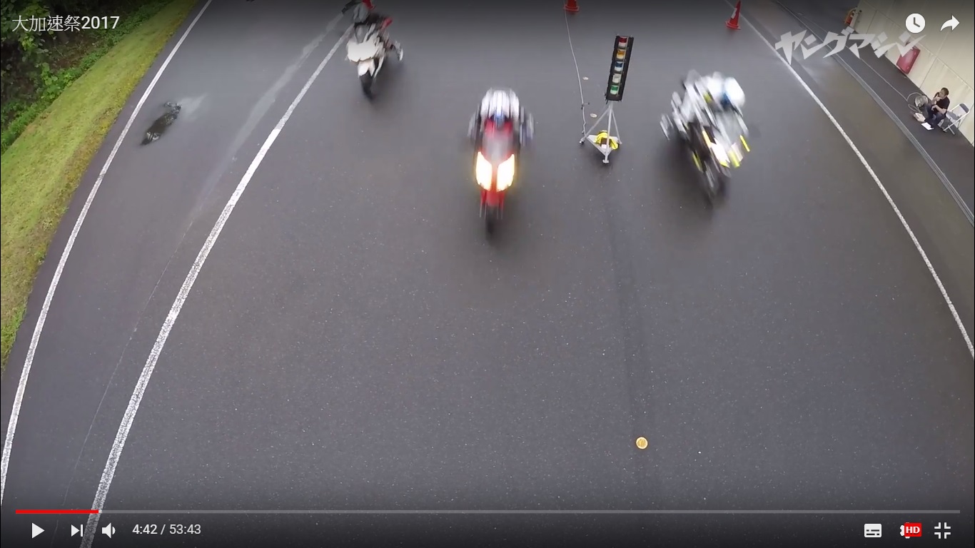 本次大加速祭只測試直線加速,在400 m及1000m 兩個距離設下記時點,採兩到三個回合進行。比賽將由日本知名車手丸山浩帶領另外兩位測試者同時進行,測試車手在每回合結束都會換車騎,確保將人的差異降到最低。
