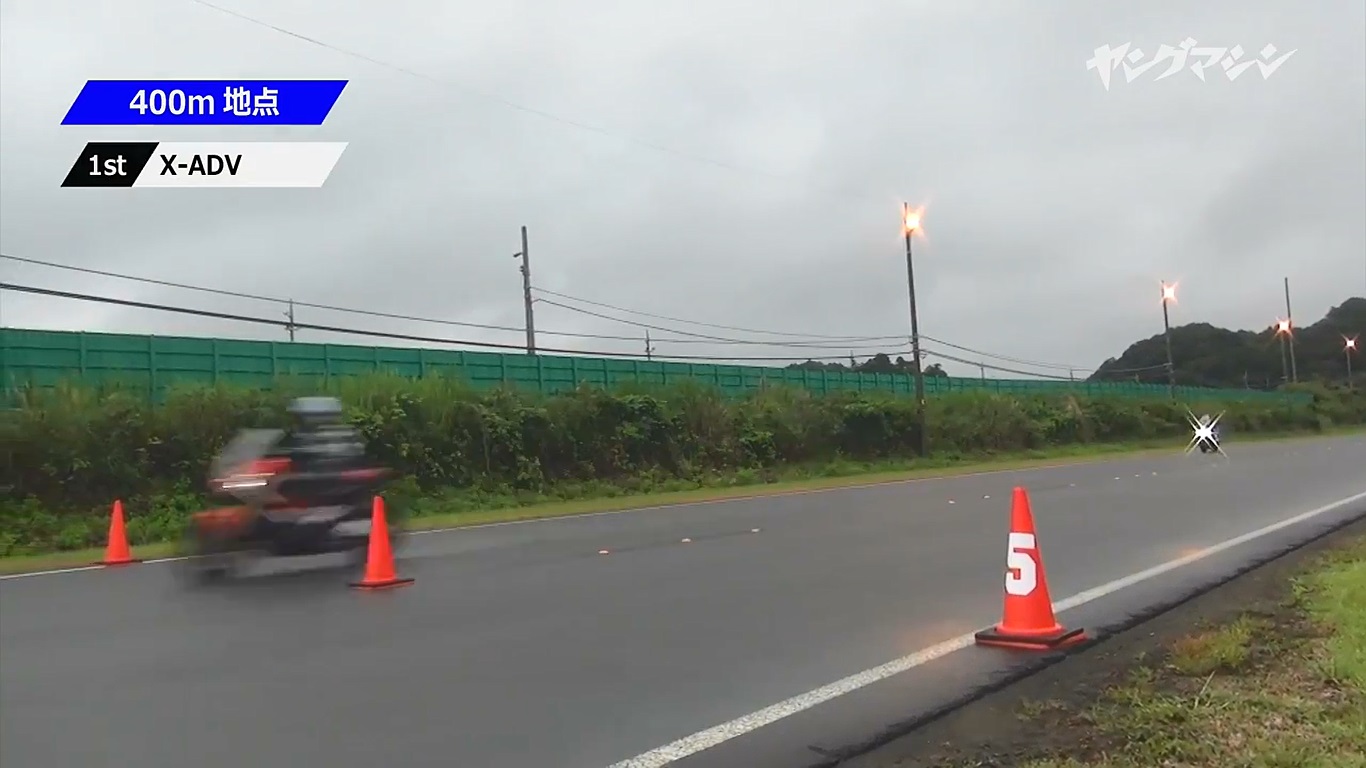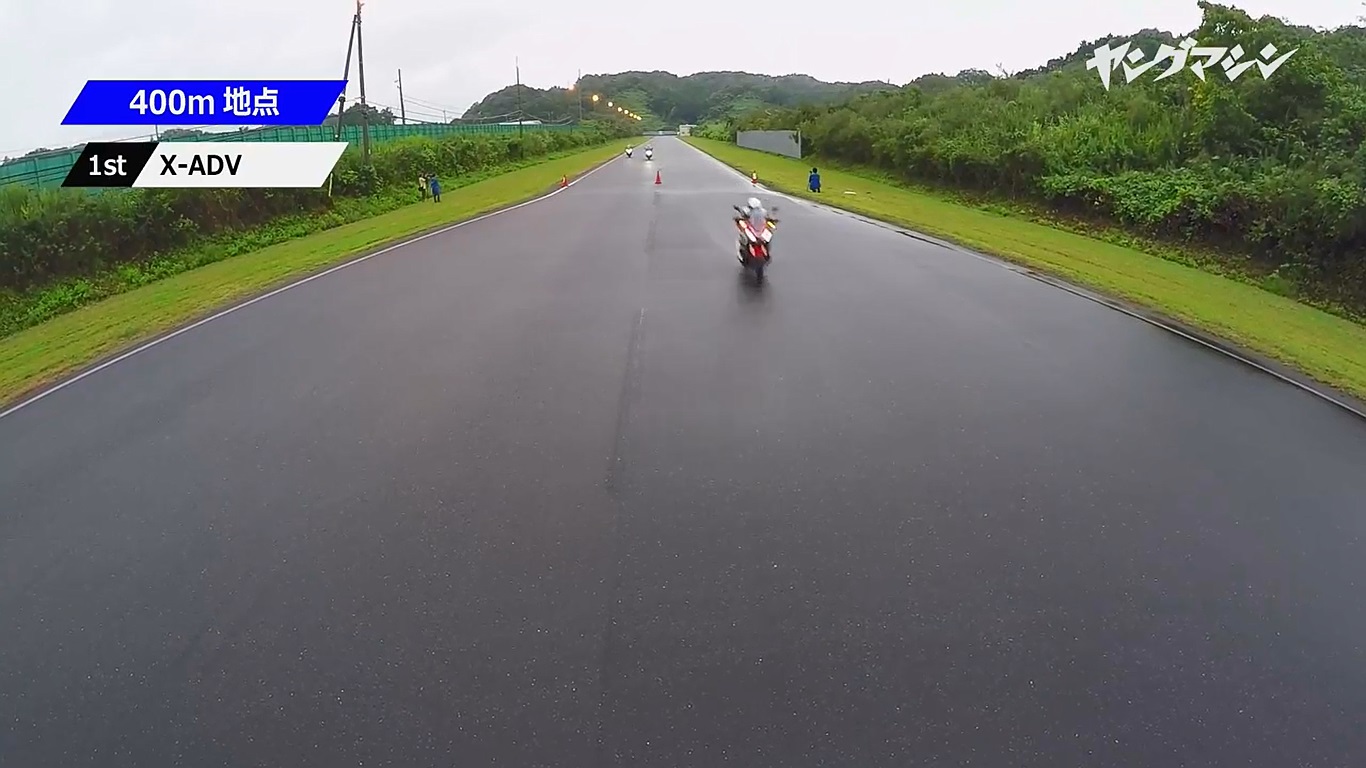 結果應該跟大家想的差不多,排氣量為三者最大的X-ADV 不管在400m還是1000m計時點,都是取得壓倒性勝利的最速車種, 而AK550 馬力與X-ADV 相同,所以在起步的時候就有明顯的感覺出X-ADV與AK550的爆發力。雖然在起中速T-MAX 讓人感覺表現不俗,但最後還是要臣服在X-ADV 與AK550 的馬力之下。