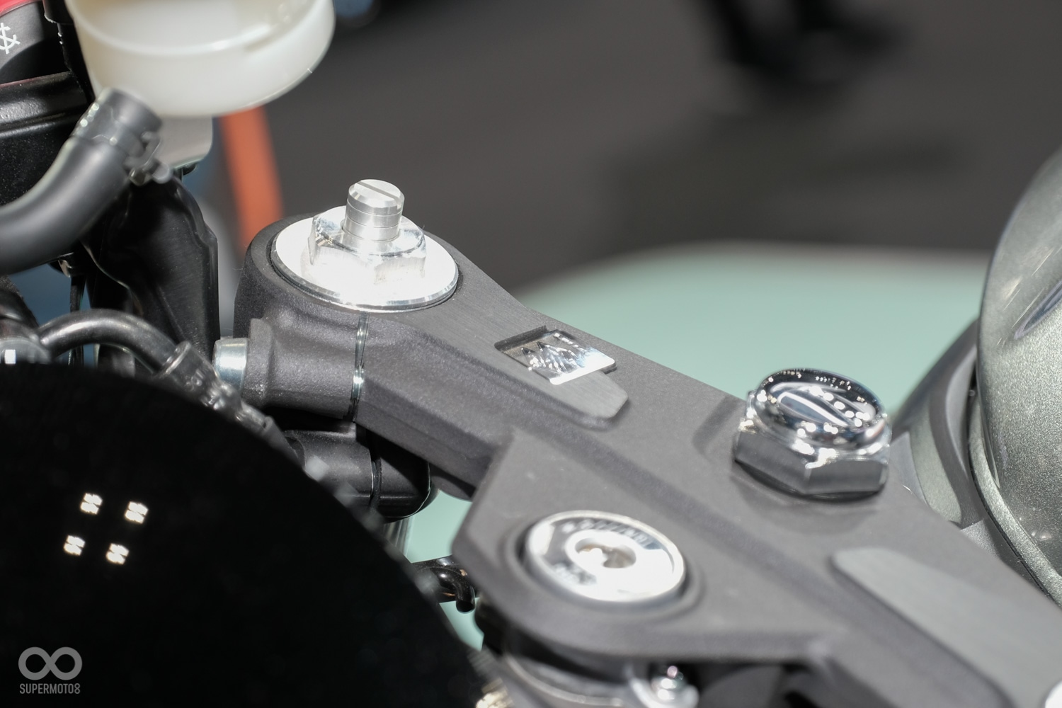 前端的子彈行頭罩,開宗明義的點出Cafe' Racer的經典元素,下方的兩顆小霧燈除了對夜間行駛的照明有所幫助,同時也向原始概念車的Rally精神致敬,而為迎合加重的跑格元素,制動的配置也有所提升,總泵從標準款的側推升級成了NISSIN的直推式總泵,而前叉的部分也加入了預載可調功能,讓前端的支撐更硬朗。