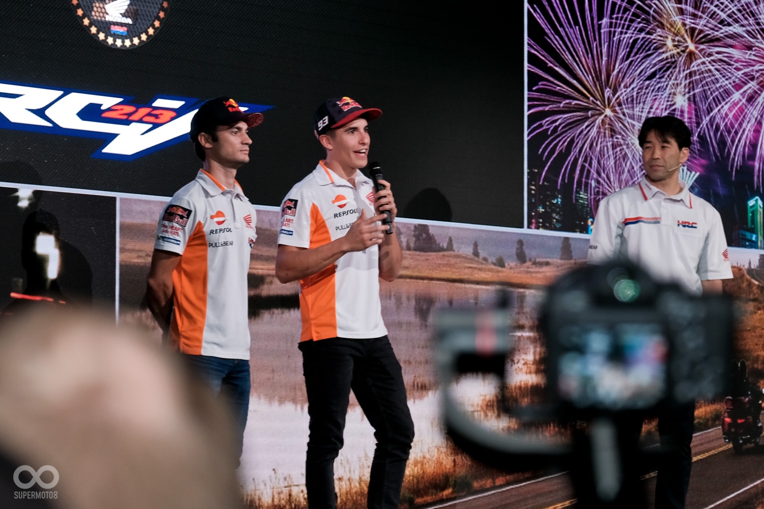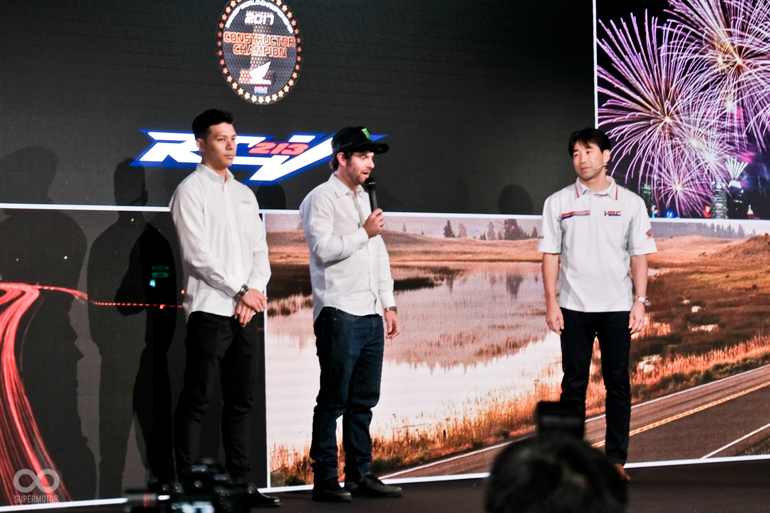 在HRC負責人Tetsuhiro Kuwata的介紹下,多位在Moto Corsa越野賽場上戰功彪炳的車手,Joan Barreda、Paulo Goncalves、Kevin Benavida、Tim Gajser等人輪番上場,而明年加盟LCR HONDA車隊Takaaki Nakagami與Cal Crutchlow也應邀出席,最後則是由今年在MotoGP上大放異彩的準年度冠軍Marc Marquez與他的隊友Dani Pedrosa壓軸登場,而這也帶起了現前的第一波高潮。