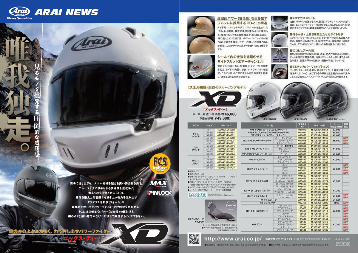 雖然Arai官方定義這款帽子是專為巡航車所打造的,但筆者認為如果搭配復古、scrambler形式的街車也非常適合,加上近年復古車再度在車壇刮起炫風,如果你擁有這樣的車款卻又尋找不到適合的帽子,即將在2017年底發售的Arai Renegade-V/XD或許會是你的好選擇;在規格上Arai提供了5種選擇,目前可以在日本Amazon上看到預購資訊,價格大約在13,400元台幣,將在聖誕節正式發貨,迫不及待的朋友可以上網預購或是明年安排一趟日本的旅遊帶回台灣囉。
