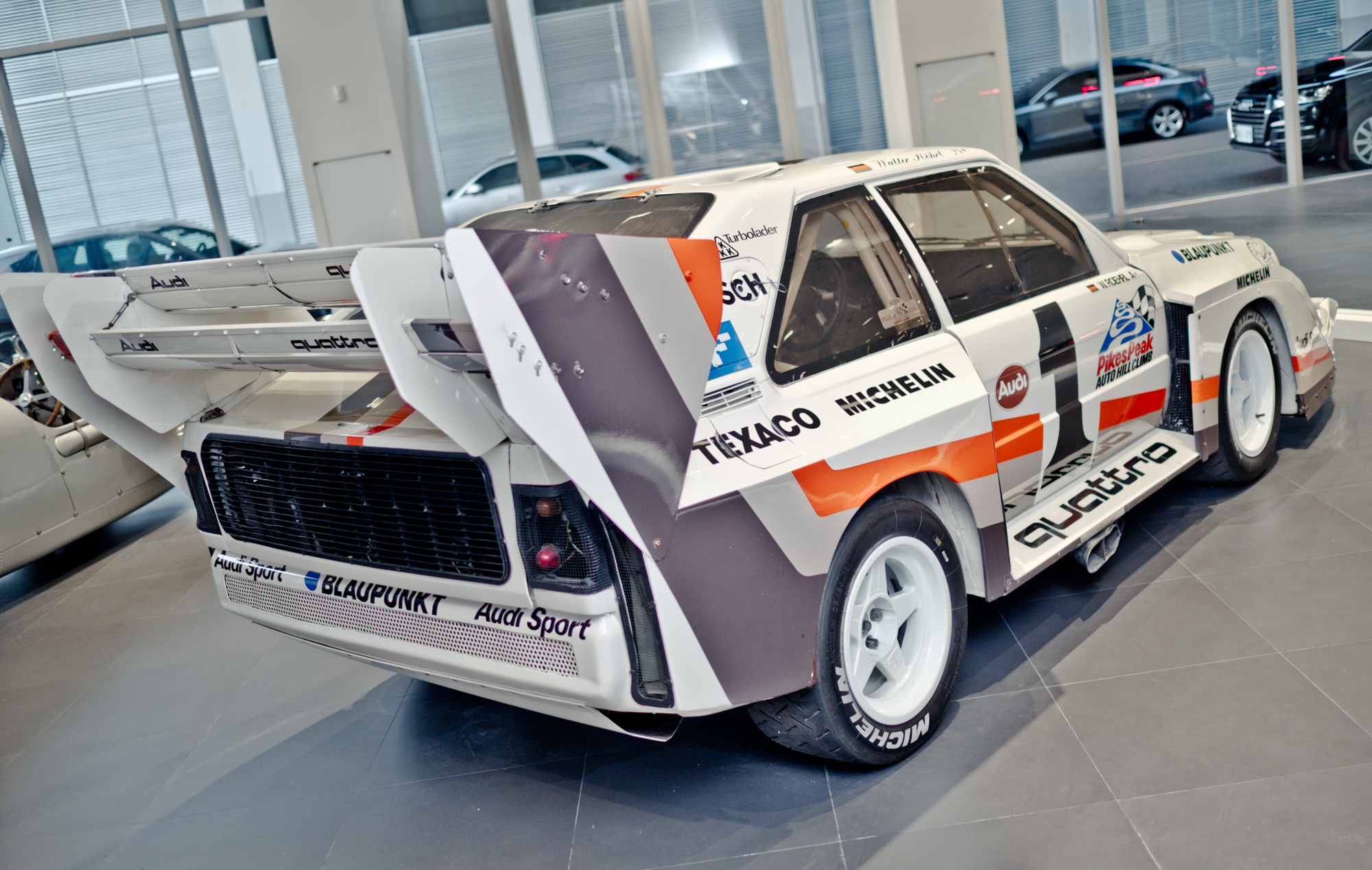 不過由於各車廠對於車體極致輕量以及大馬力的追求,Group B 賽事開辦以來重大意外不斷,其中在1986年 WRC Portugal 與Corsica 站造成多名車手與觀賽者傷亡,眼看Group B即將吹起熄燈號,Audi車隊決定退出 WRC轉戰險惡程度不差上下的美國派克峰爬山賽。沒錯!這就是至今依舊非常熱門的派克峰爬山賽,派克峰 ( Pikes Peak ) 標高4301公尺,全程有156處彎道,總長度約20公里,沿途皆是黃土和碎石路面,路窄且無護欄,多起意外都是失控跌落山谷,難度與危險度極高。