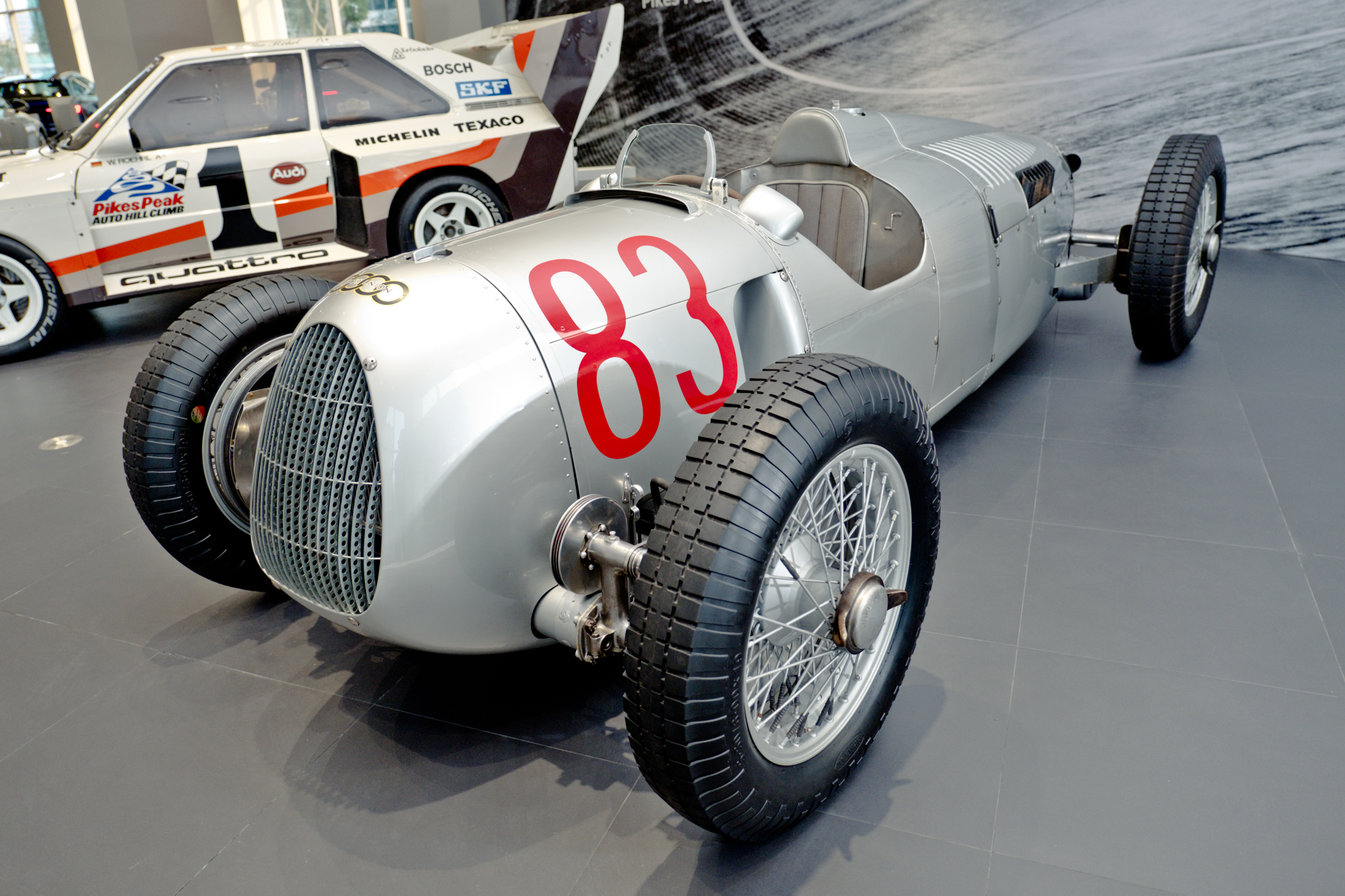 因此 Auto Union 又被稱作為銀箭車隊 (Silver Arrows);而主要的競爭對手則來自 Mercedes-Benz 團隊,直到世界第二次大戰於 1939 年爆發後,這項輝煌的賽車歷史才被停止。但他們肯定沒想到,之後銀箭車隊卻成為了Mercedes-Benz的代名詞了!Audi隨後再次出現賽車盛世的時候,那就是強大的quattro現身了!