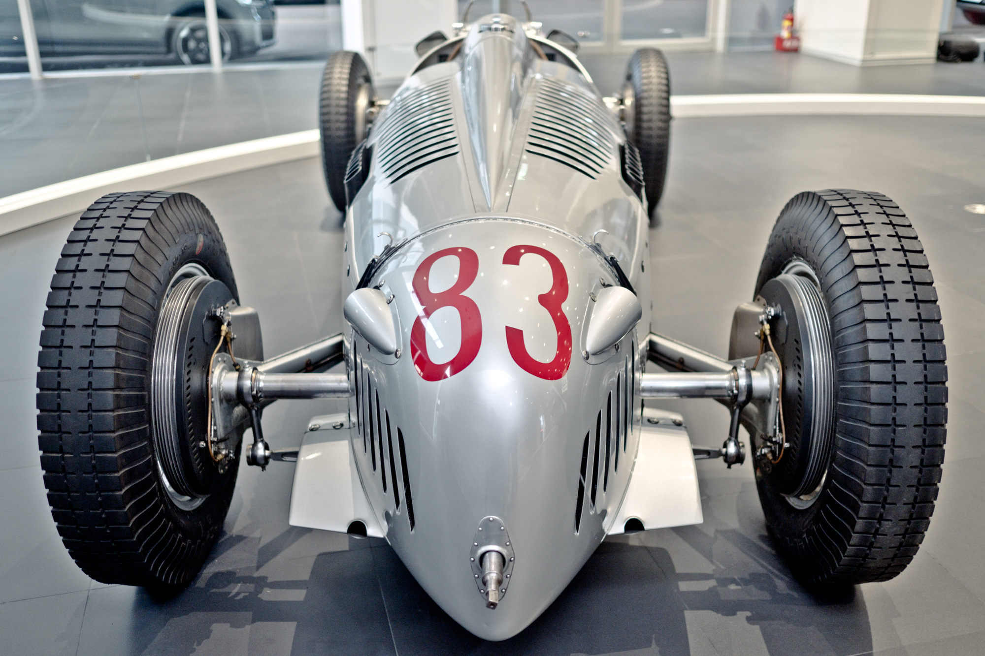 由Porsche車廠創始人費迪南 · 保時捷博士操刀的Auto Union Type C 則大膽的將引擎安裝於後軸前方,油箱安裝於駕駛人與引擎之間接近車身中央的位置,也因此 Auto Union 賽車擁有短車頭、長腰身的特殊比例以及流線的車型。這在當時可說是相當詭異的外型;不過這樣的設計,卻成為日後所有賽車共通的設計邏輯。