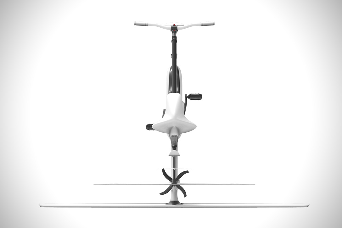 這具水上腳踏車的骨架是由鋁合金打造,因此整體重量並不會太重,底部的大小翼板也都採用了碳纖維材質打造,除了輕巧之外更重要的是相當堅固,長達2m的主翼板搭配上前方1.2m的副翼板,可以讓車輛維持著良好的平衡,即使你是靜止不動的狀態下還是可以平穩的在水上停留,當然如果有浪的話就另當別論了。