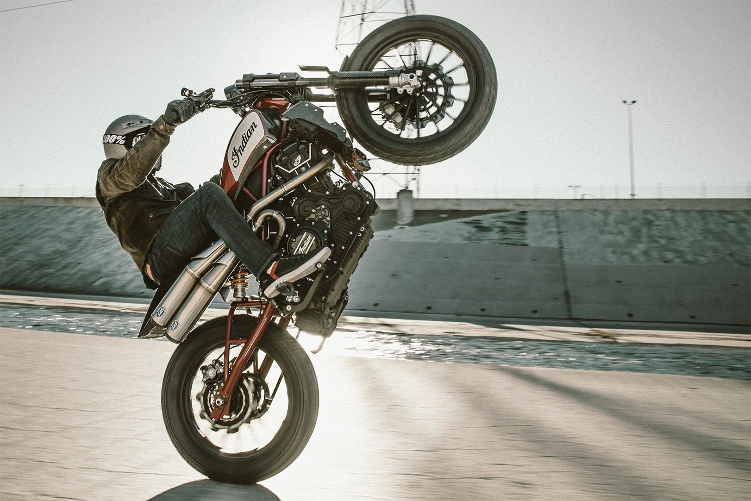 在引擎動力上,Indian為Scout FTR1200搭載了SCOUT車系的1133cc水冷V型雙缸引擎,能提供破百匹的動力,車架部分也與正式比賽車的設計非常類似;車上還搭載了其他符合街頭行駛的配備,例如Öhlins所製造的避震器、Brembo的煞車系統,甚至是大量採用碳纖維材質打造的車身鈑件,以及知名大廠RSD所製造的輪框,多虧如此,即使裝上了碩大的引擎本車車重卻可以控制在200公斤以內。