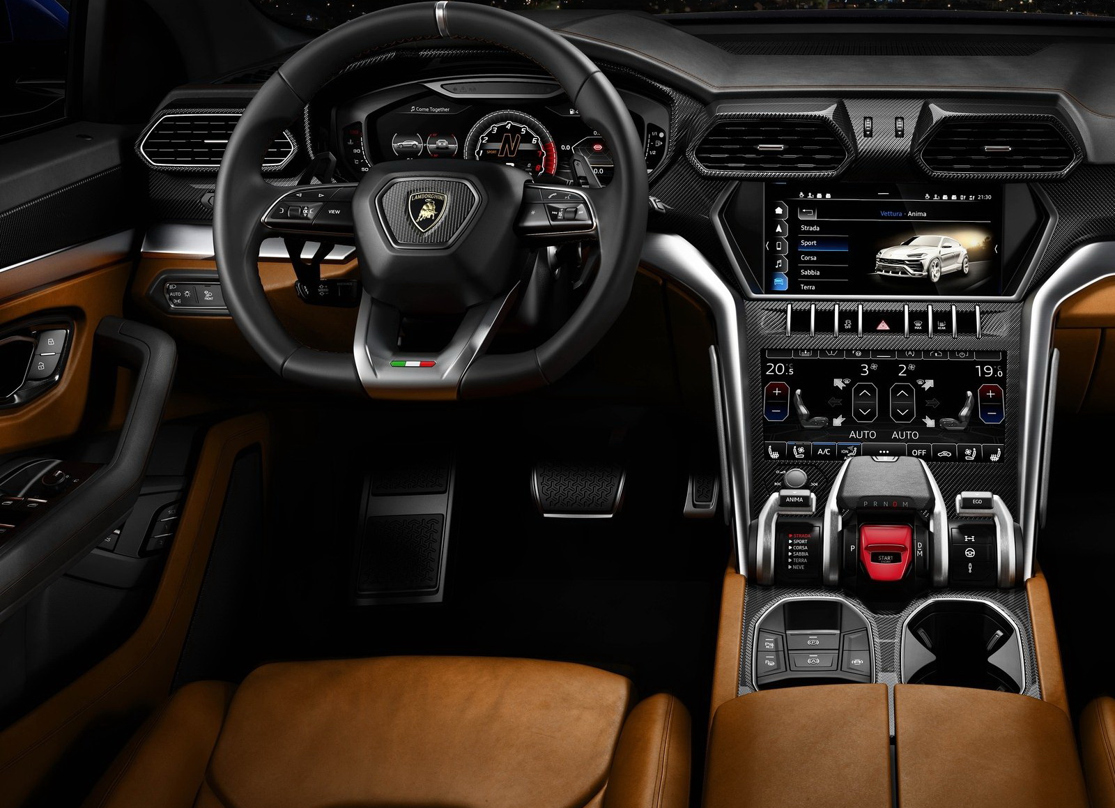 不過Urus可不只是直線加速超強而已,這輛車可說是集所有LAMBORGHINI科技於一身的超強車種,接收了源自於Aventador S相同的後輪轉向系統,讓這輛車在賽道上也可以擁有一樣的狂暴表現,同時從LM002就相當亮眼的越野能力也傳承到Urus身上!配備了具有主動扭力分配的四驅系統,搭配可依照不同路況調整高度的氣壓懸吊系統(158-248mm之間),而Tamburo駕駛模式除了以往就有的STRADA、SPORT、CORSA外,更追加了SABBIA(沙地)、TERRA(越野)、NEVE(雪地)等模式可選,你就知道這輛車的越野能力有多麼強悍!
