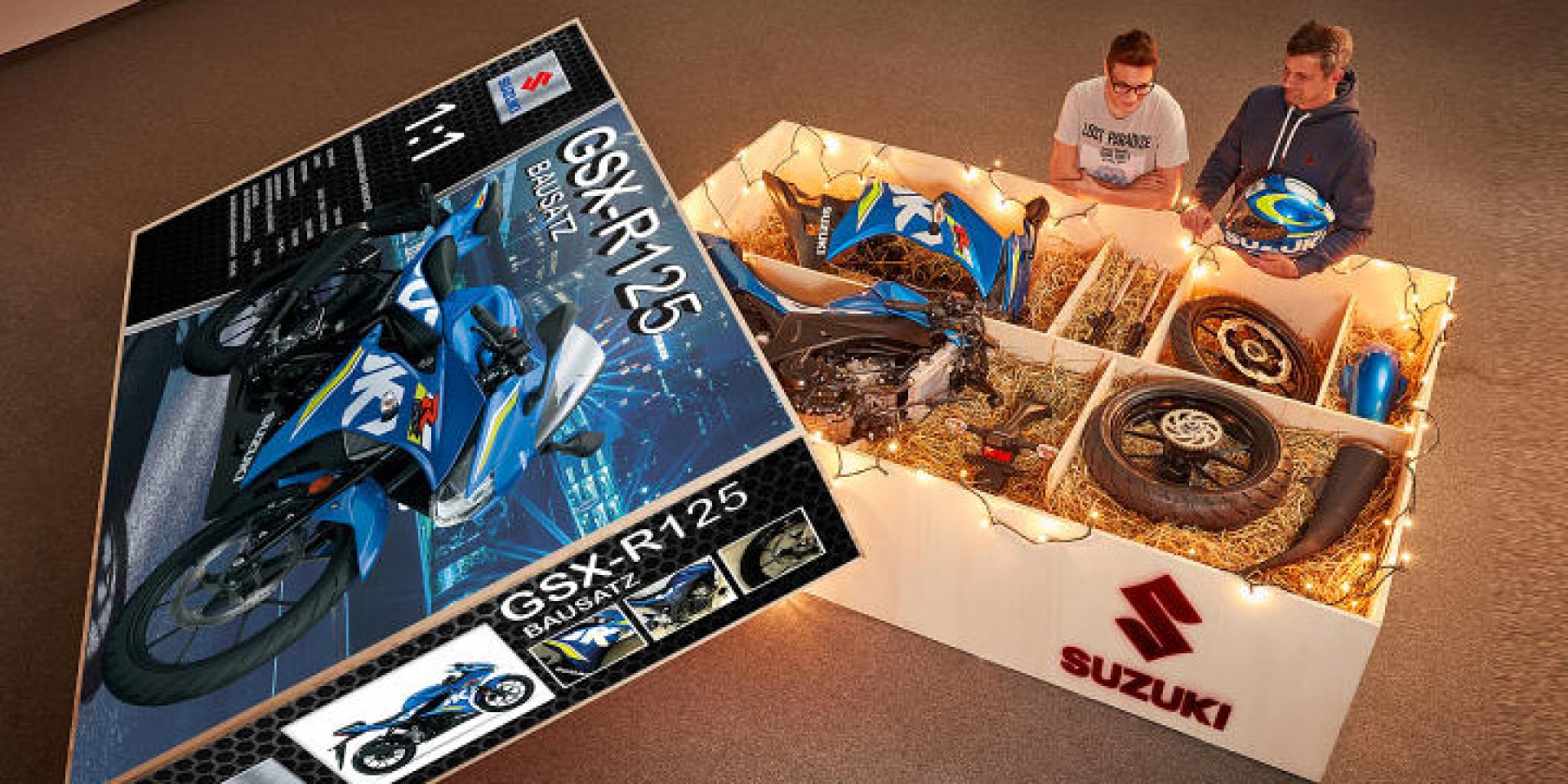 隨著聖誕節將近,“該送什麼聖誕禮物”成了近期最夯的搜尋關鍵字,這苦惱的問題舉世皆然,外國更是深受其害,為此德國SUZUKI便推出了款聖誕節限定的GSX-R125特殊模型;也許你會想問,模型有什麽好稀奇的?的確,若只是一般的模型TAMIYA就有賣,但若比例拉到了1:1那又是如何呢...