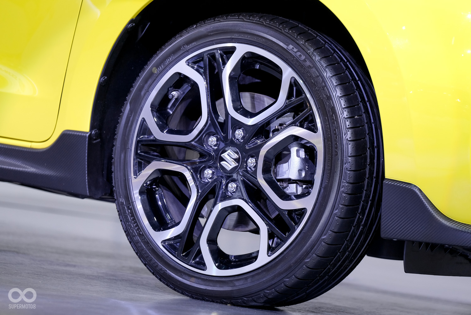 前懸吊換上改裝品牌Monroe的阻尼系統,並換上較粗的防傾桿來符合整體的操控性能,輪轂和車輪軸承組成一個元件,這與分開式的零件有更好剛性。後懸吊拖曳臂為了Swift Sport重新設計,整體的剛性提高了1.4倍,後輪外傾角提升,抗扭曲強度提高3倍。