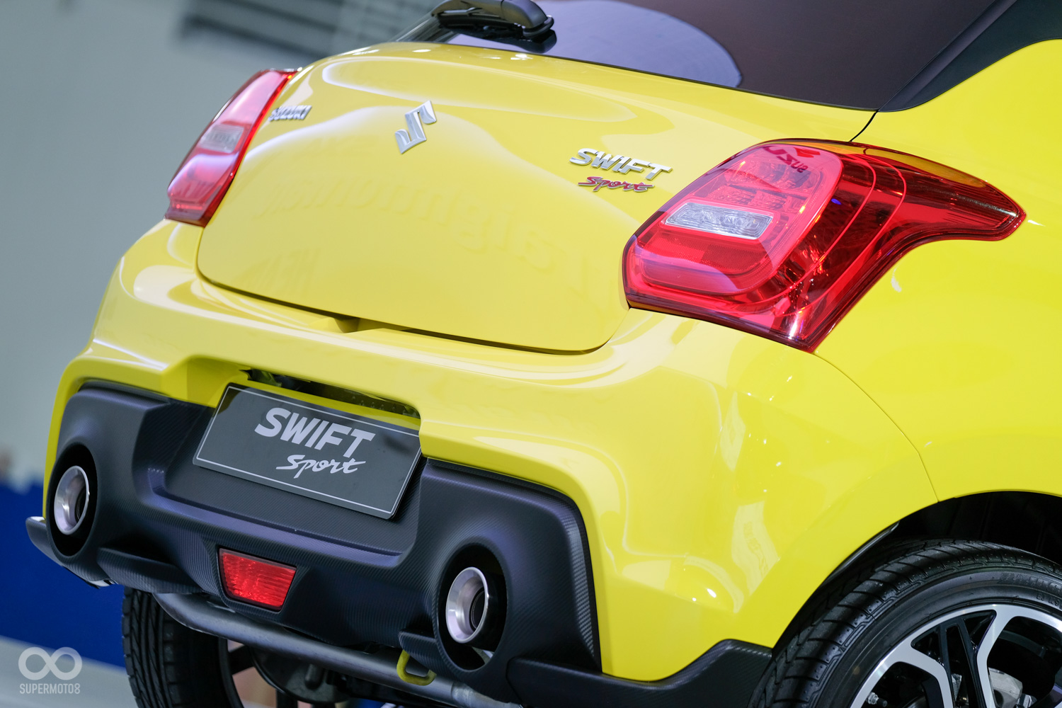 全新Suzuki Swift擁有很歐系的風格,在Sport版本上前車頭氣霸明顯加大,左右獨立的霧燈區域讓線條更加立體,後保險桿的造型也與一般版本不同,呈現出濃厚的兇悍氣息,左右兩邊的頭燈導入LED行車燈,車側線條維持上一代的精隨,後門把手改為隱藏式,車尾大面積的後尾燈同樣也是LED光源,下方利用黑色塑料材質妝點出Diffuser樣式,左右單出排氣管很有運動風格,雖然從照片中聽不到它的聲浪,但可以幻想出發動引擎後的低頻嘶吼。