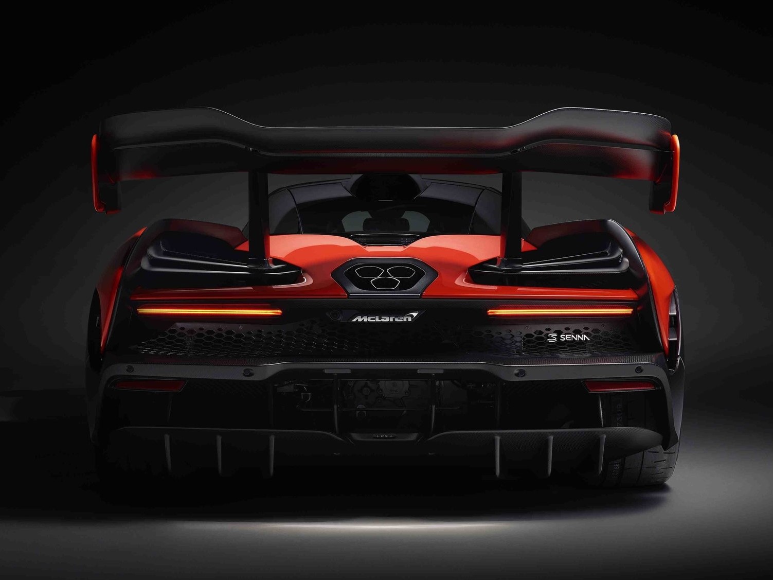 獨特的鈦合金排氣管出口角度及位置,並不是為了特異獨行,而是在確保快速而直接排放的前提下,能讓廢氣引導離開尾翼。至於細長的LED尾燈也有名堂,除了與頭燈相互呼應,目的也與車身其他部位一樣,盡可能縮小面積為空力設計保留最大的揮灑空間。在車尾下方還可以看到雙層擴流器設計,這是以一體成形的碳纖板製成,也為車底製造低壓帶,讓McLaren Senna吸附地面效果更好。而大型尾翼同時也是整輛車的最高點(1219mm),透過液壓控制能在重踩煞車時調整出最大角度,此時可擁有超過6500平方公分的撞風面積。