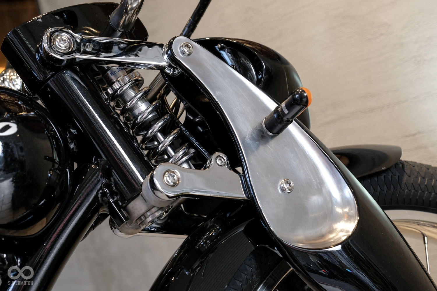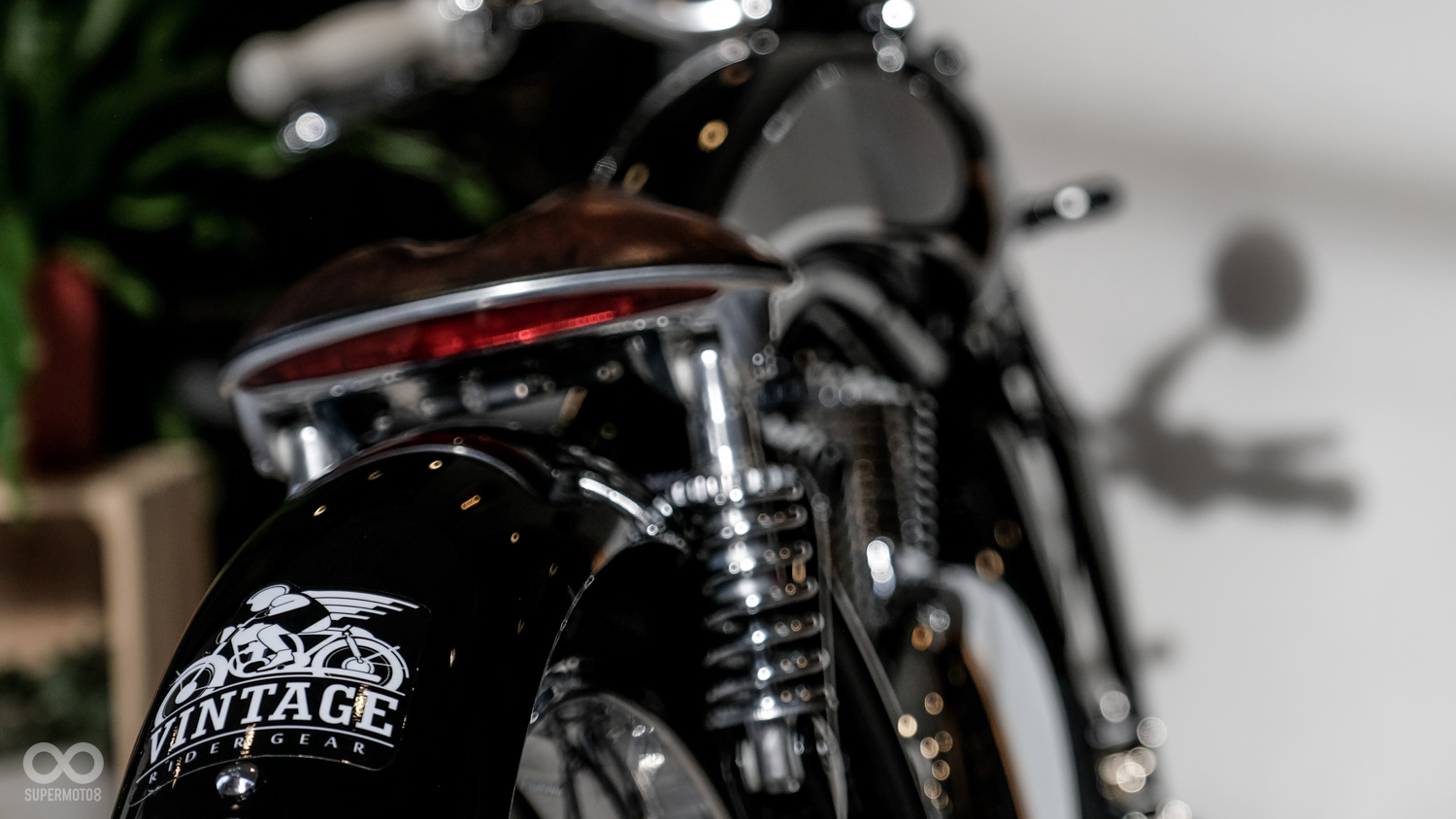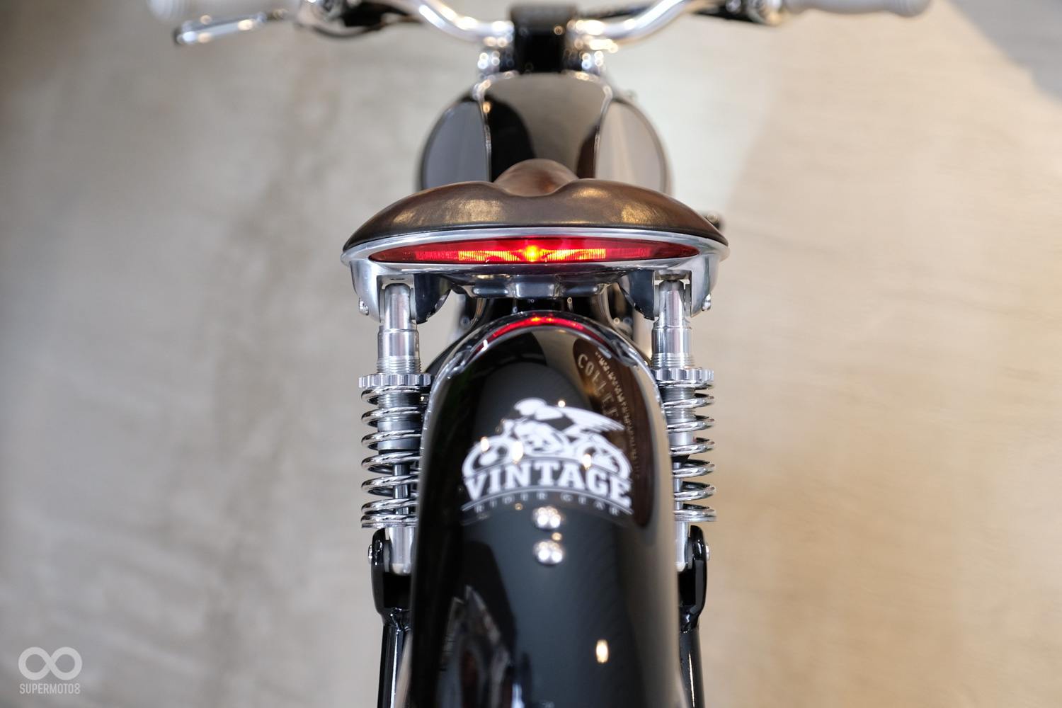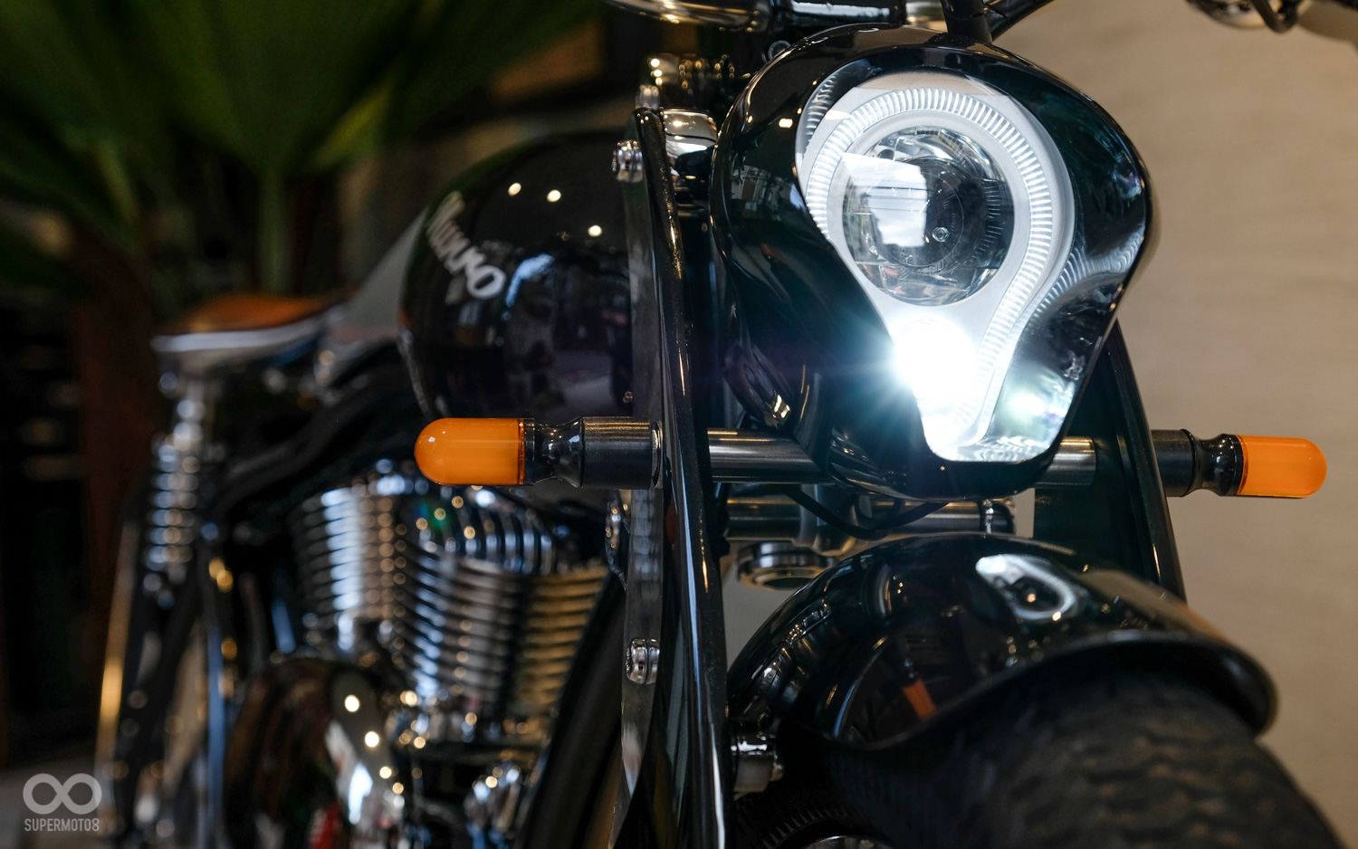 而除了原廠獨特的造型許設計,車主也為這輛漂亮的Munro 2.0加入了自己的巧思,將原廠配置的浪花碟換成了口徑較大的圓盤碟,除了提升了制動力,也讓整體的造型風格更為統一,而駝色的椅墊更是由著名的手作工坊Kingsman Seat所打造,手工染色獨特的做舊皮革畫龍點睛,讓這輛Munro 2.0不單優雅,也在這復古的風格中多幾分手造的溫度與深度。