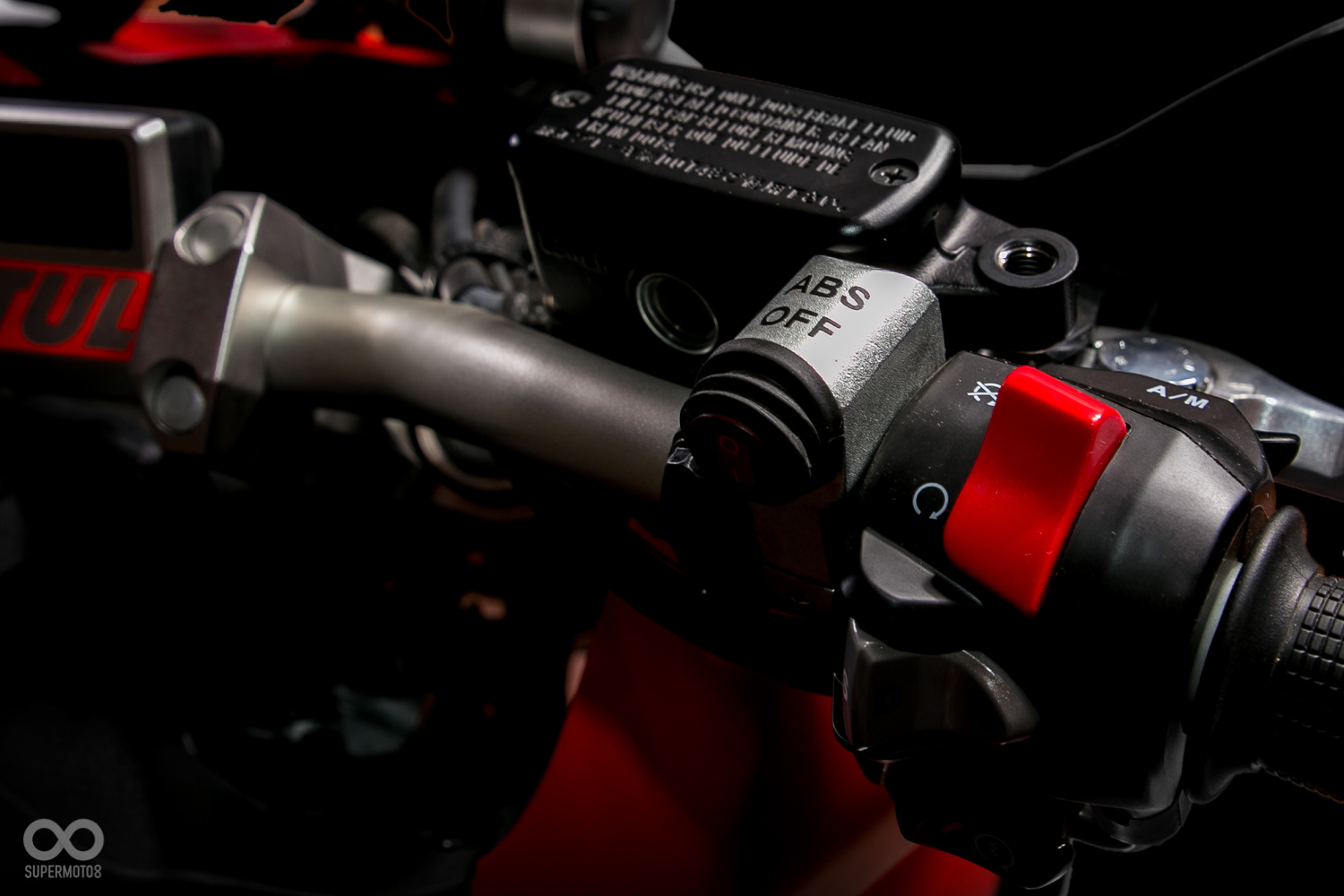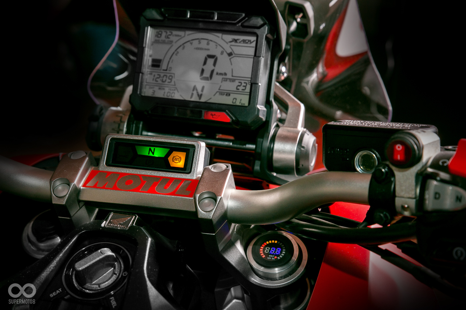 雖然輪胎的尺寸加大,但車重沒有因此增加,這輛搭載了多樣配件的X-END更是比原廠車輕了28公斤,一掃過往許多玩家挑惕的車重問題,受惠於加大尺碼的輪胎組車身離地高度增加了4.5公分,搭配Termignoni鈦合金排氣管除了減重之外也帶來更震撼的聲浪,車重的減輕以及車高的增加都代表著這輛車是以純越野為目標打造的決心,Rollfactory Design在手把則是加上了ABS關閉按鈕,讓玩家可以更隨心所欲操縱車輛,最後為了兼顧日常需求,在前叉上方配置了電壓表與USB充電器。