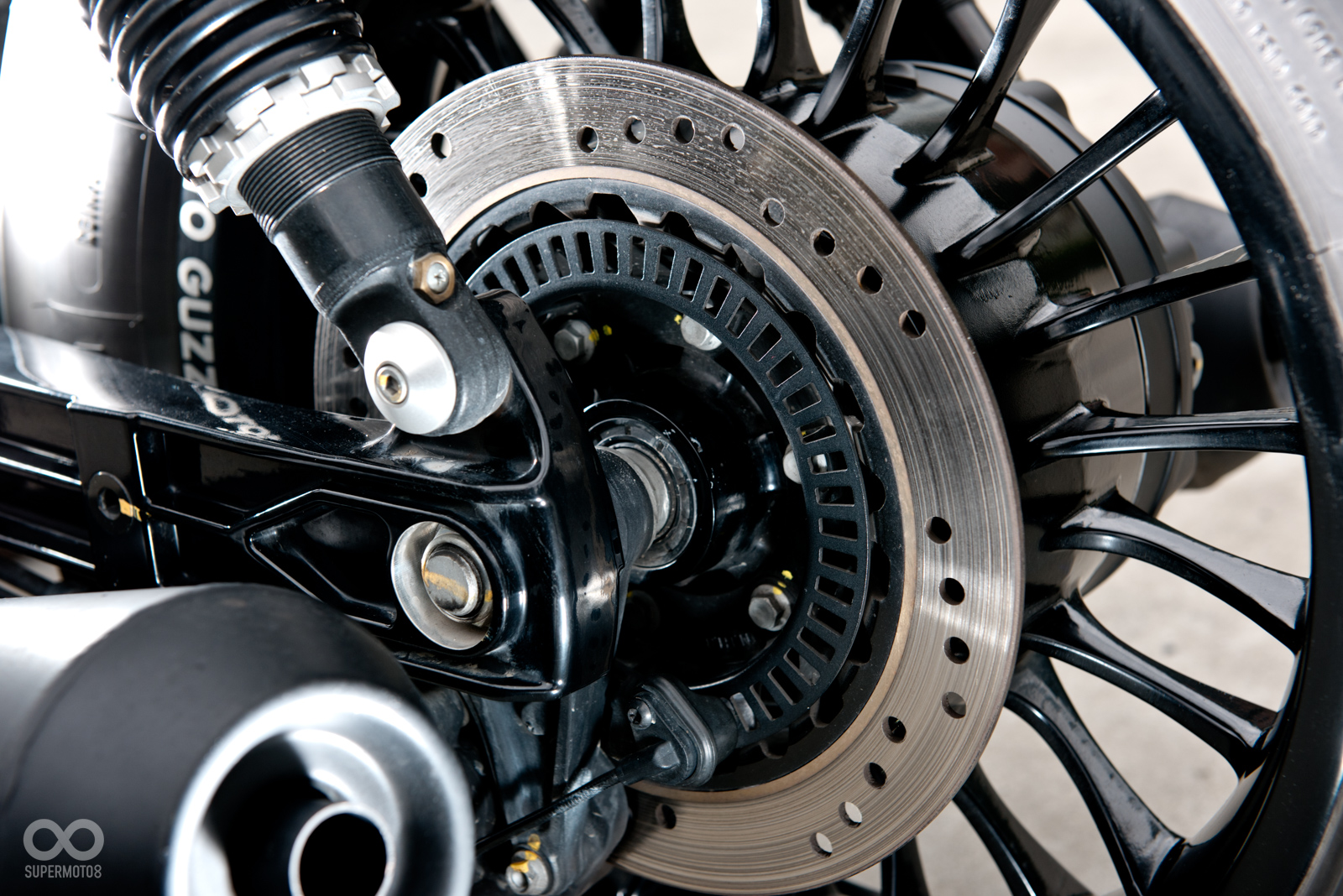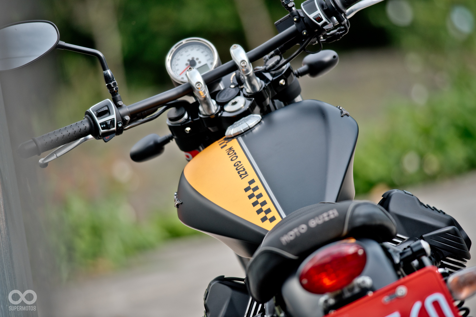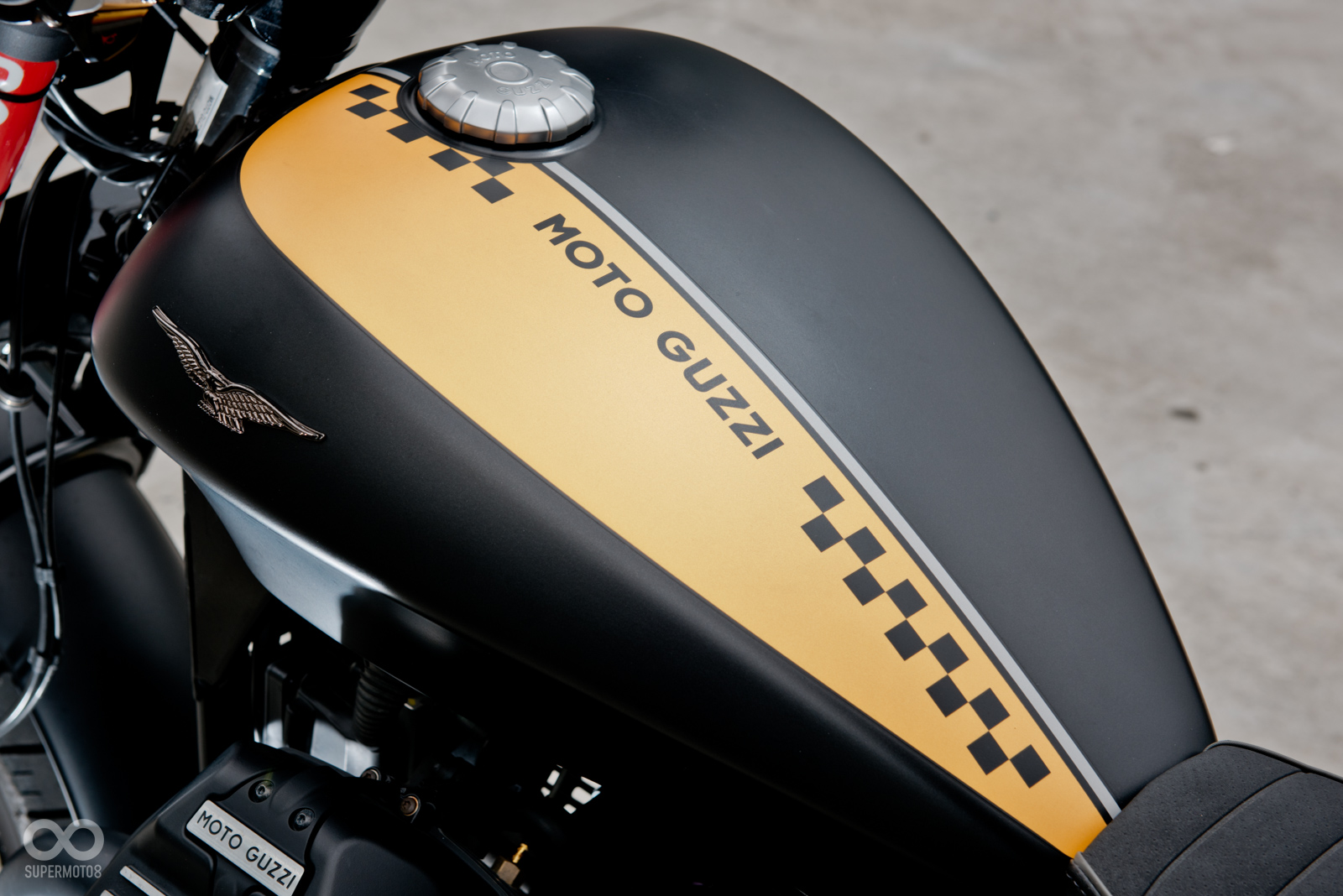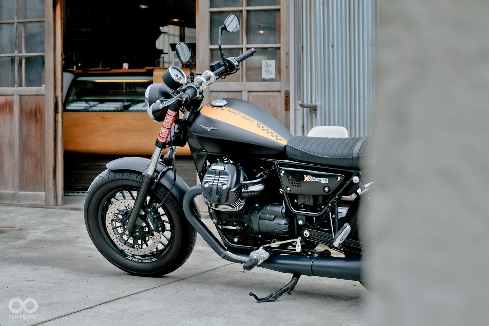 而細節方面常被說是義大利車的死穴,組裝不良、漆面品質粗糙、焊接不確實等等,但這些問題在Moto Guzzi上並不存在,沈著的消光黑佔據了車身多數的版面,與一旁亮眼的金黃相互呼應,精美的把手冠座拋光後打霧營造出豐厚的質感,引擎本題則是近年相當流行的黑化處理,並且在散熱鰭片處加施以銑面,多層次的堆疊出內涵與細膩。