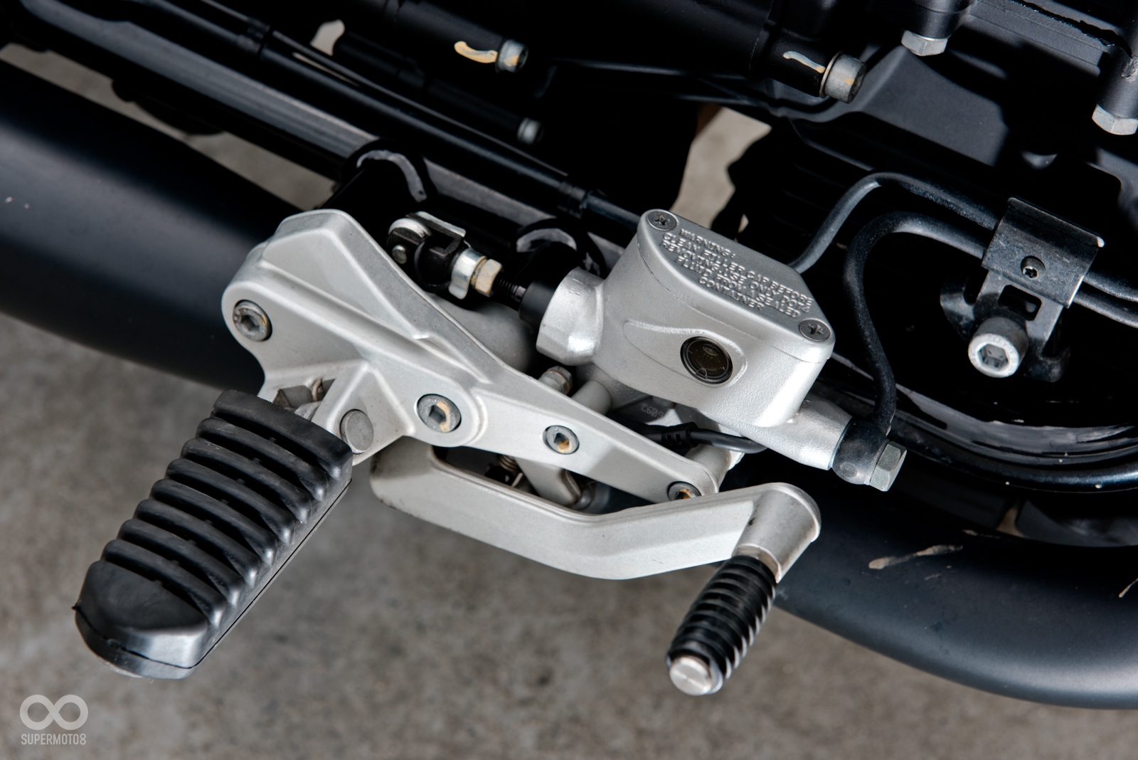 改成Bobber的風格後把手也換成了平把,腳踏略微趨前營造出巡航車氛圍,但或許是因為缸頭位置的緣故,反倒成了自己的風格,搭配上785mm的座高腳踏實地也讓騎士更安心的駕馭,但因為油箱造型的緣故腿並不好挾持,還好車重輕盈200kg不到,讓這樣的小缺憾不構成影響。