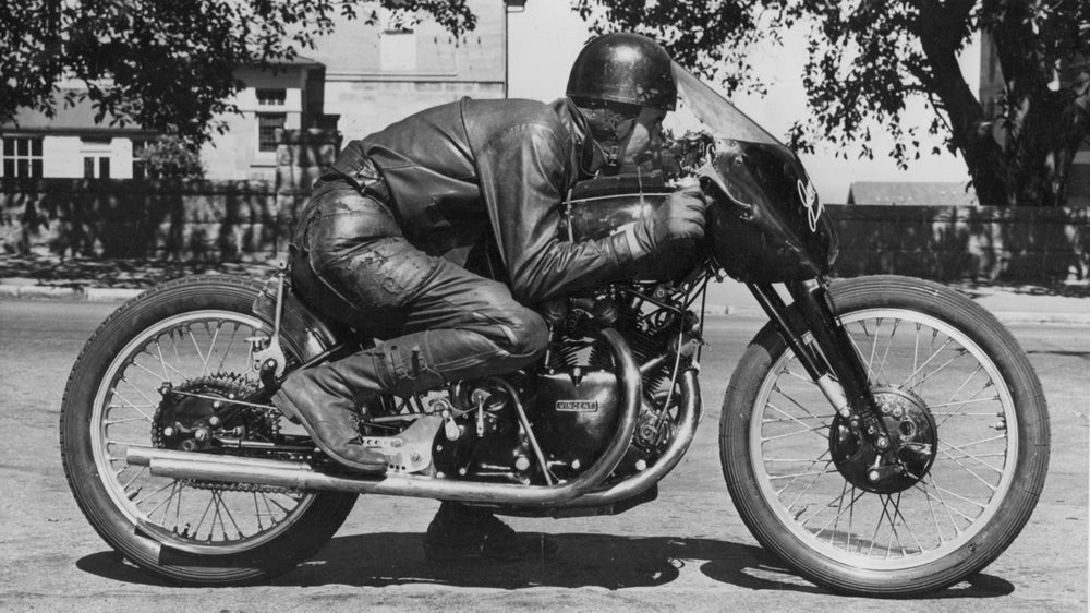 這輛Vincent Black Lightning是由Vincent-HRD motorcycle工作室於1948年至1952年間生產的車款,工作室以Black Shadow車款為藍本進行強化,隨後推出Black Lightning挑戰當時的世界最速紀錄。1948年9月13日Vincent Black Lightning在美國主名的玻利維亞鹽湖上創造了平均時速達到241.905公里的紀錄,有趣的是為了創造極速紀錄,當時的測試車手只穿著一件泳褲並且將身體趴在椅墊上以減緩風阻的影響,當時的照片也成為摩托車界著名的瘋狂歷史。