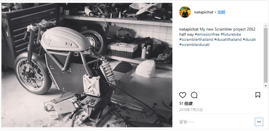 喔,我們還沒提到車輛改裝者的背景,他名叫Apichat Leenutaphong,身兼DUCATI和ROYAL ENFIELD 泰國代理商的創辦人,你可以猜到他私下是個不折不扣的二輪熱血分子,而且非常喜愛電動車,擁有五輛TESLA、三台電動四輪以及十台電動摩托車!寫完這些數字後,我懷疑用愛這個字來描述是否足夠形容他的偏好。