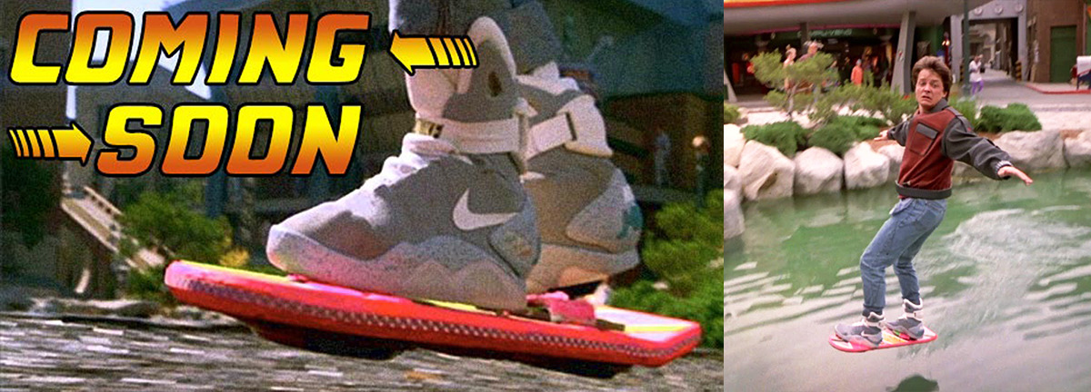 經典的電影回到未來,在1989年上映第二集 (Back to the Future Part II)。當時電影中設定「穿越」到未來時間是2015年10月21日,不就是幾個月後了!雖然大部分的科技幻想都沒達成,但除NIKE那雙自動綁鞋帶的球鞋,最近難道又有一項科技要達成了?就是片中主角馬蹄的懸浮滑板。