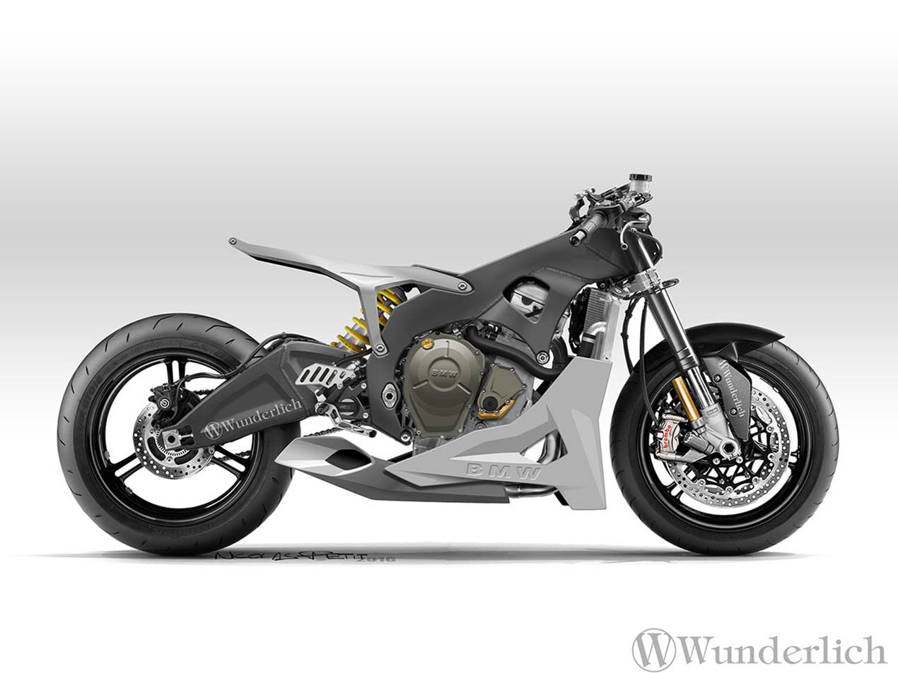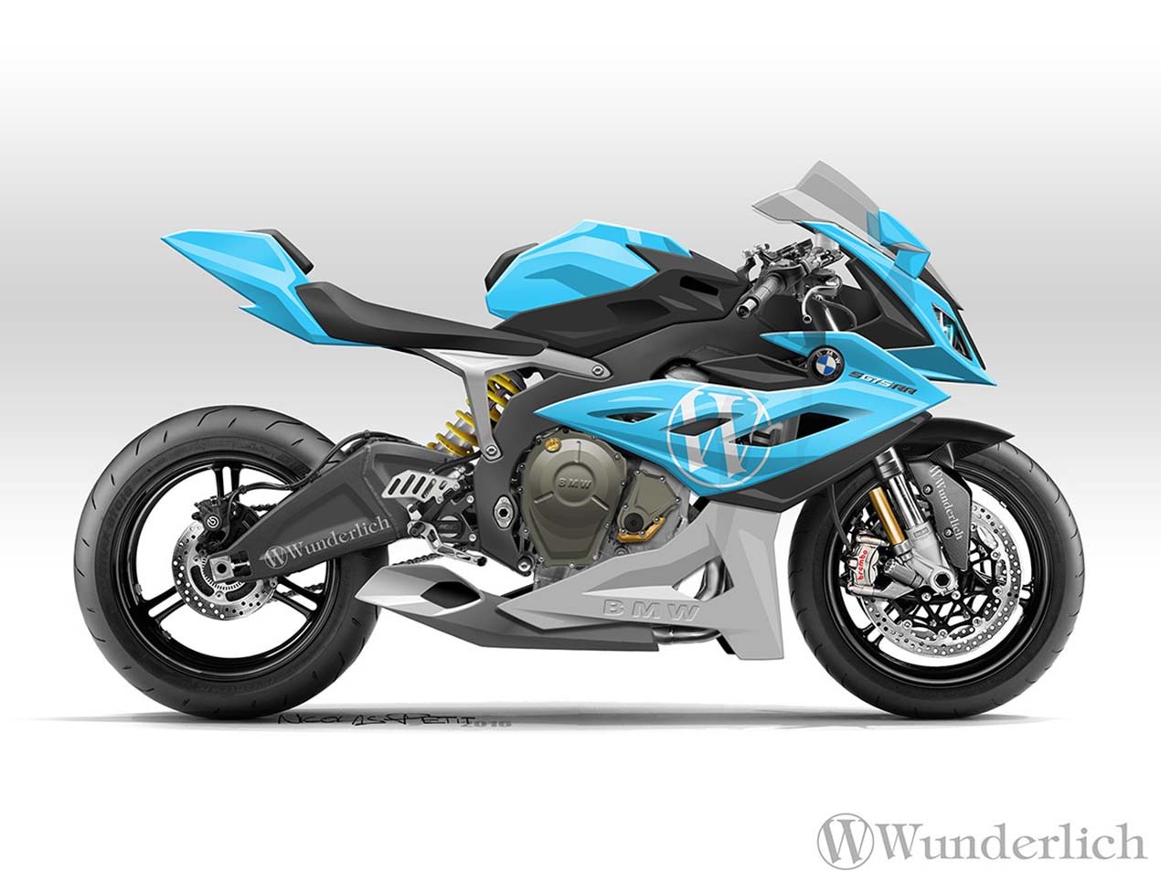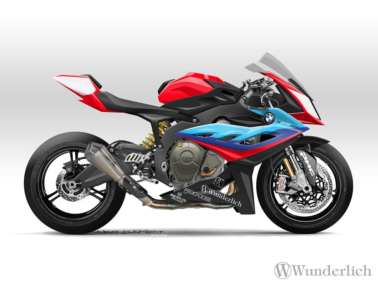 外媒Nicolas Petit日前提出了幾張BMW S675RR的概念圖,車頭部份則是理所當然的延用了S1000RR的造型,BMW的跑車經典的不對稱頭燈讓S675RR這台概念車瞬間對了胃,而車側整流罩的部分則也具備了鯊魚鰓散熱孔與碩大醒目的BMW廠徽,而在車側後方則以極薄的坐墊與短捷俏麗的車尾,外觀設計方面再在的都將老大哥S1000RR的霸氣給完整保留。