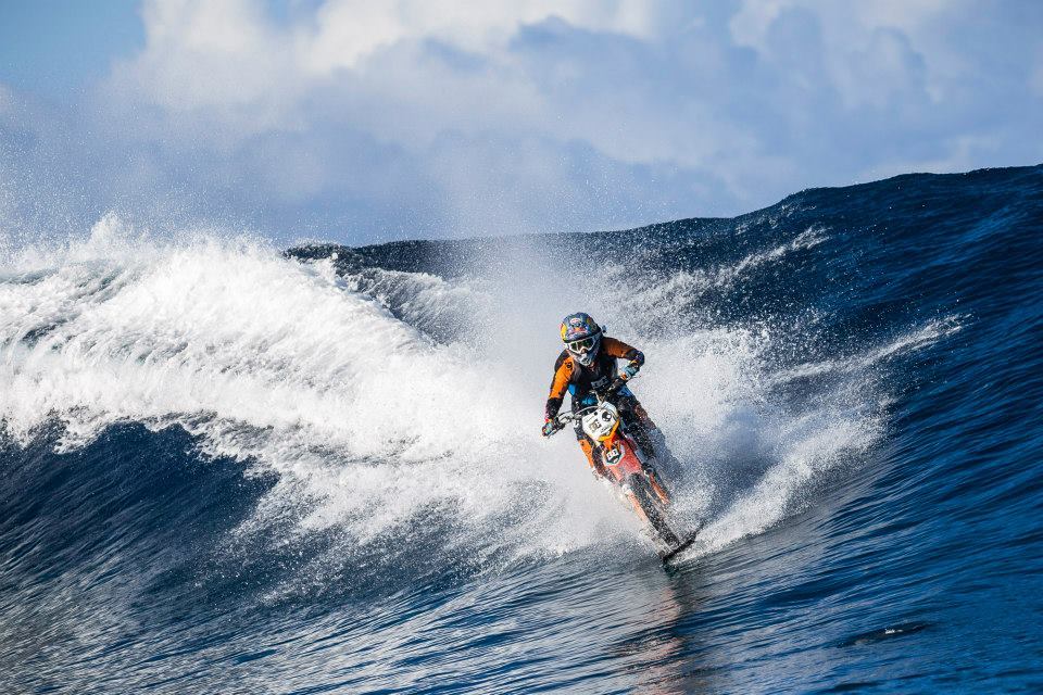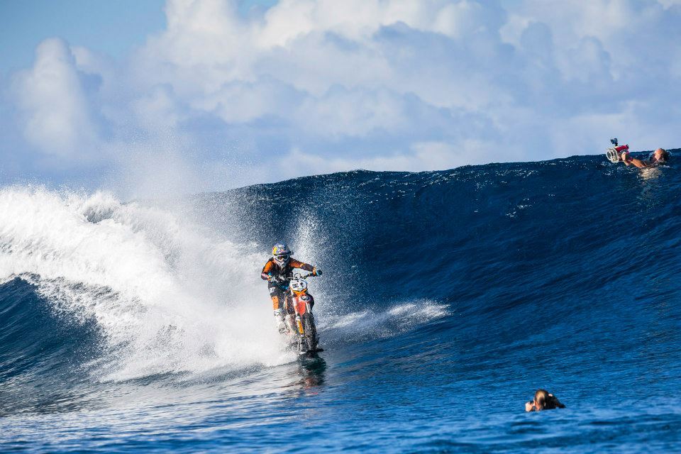 在經過幾次的測試,正式開始騎車追逐海浪,海浪的吸力產生了像是跑步機一般的效應,消耗了推進的動力。Maddison發現四檔能提供他最佳的下浪速度,當正式開拍的兩次衝浪過程都非常順利,Maddison騎著KTM在浪管中穿越,越野風鏡外是個被海浪包圍的畫面。成功了!他與DC拍攝小組完成了這次的瘋狂任務,且已經補齊了所需要的畫面並且全身而退。