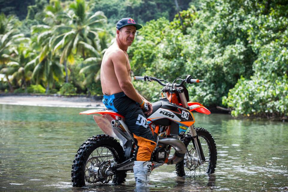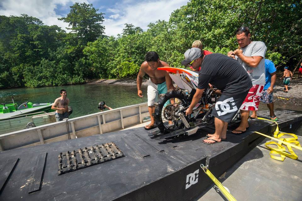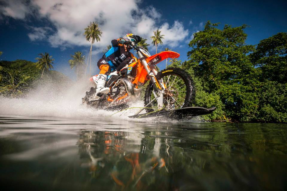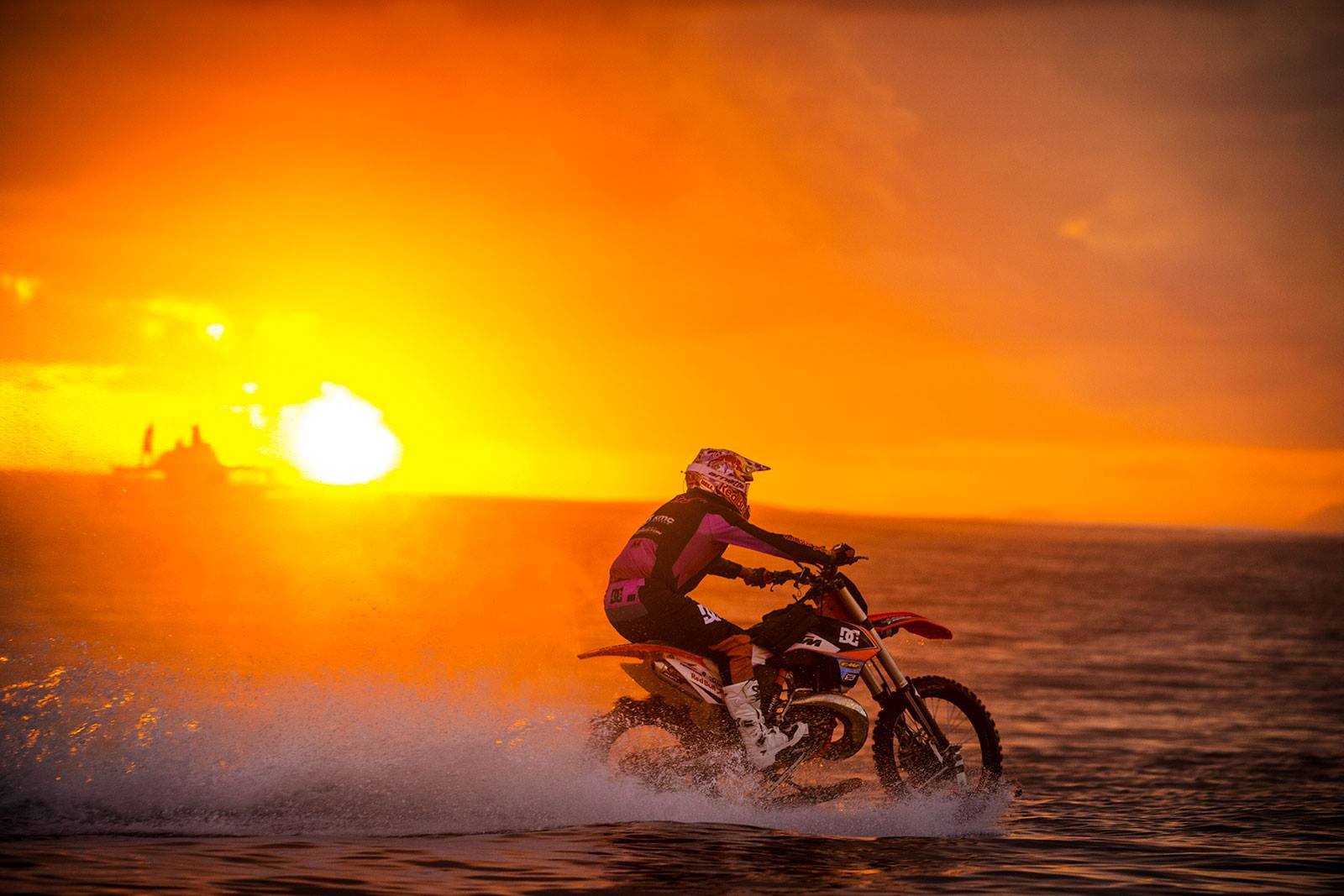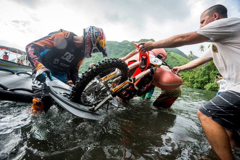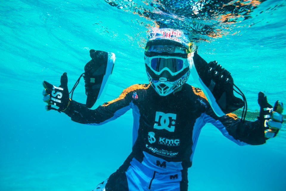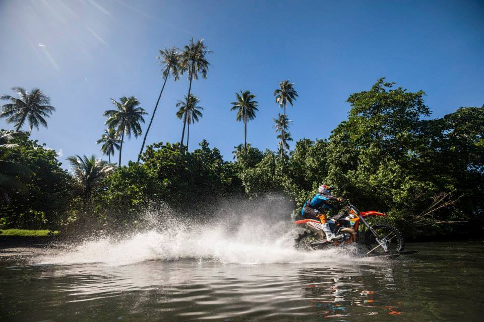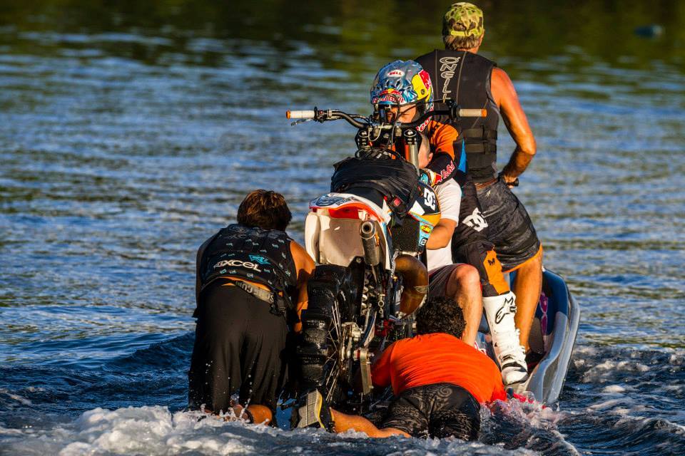 早在家鄉他就已經開始試著用HONDA CB500R 研發水上機車,他請到一個製作滑雪板的技師幫他設計車輪下的滑水板,測試十個不同的滑水板與輪胎,在練習的過程中沉入水中30幾次,每次都需要花五個小時修復他的機車,最終決定使用二行程的KTM 250 SX,大大的縮短了修復的時間。就在水上機車研發成功後,他們興奮的開始準備拍攝影片,並與DC洽談合作一起來完成此壯舉!