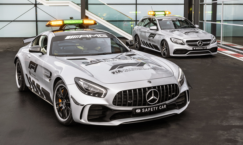 從2015年至2017年,都是由Mercedes-AMG提供的GT S在擔任安全車的角色。而到了2018年,GT S正式卸下F1賽事的安全車任務。接任的不是別人,正是Mercedes-AMG旗下得意之作,擁有代號M177,4.0L的V8雙渦輪增壓引擎,能夠榨出585hp最大馬力、71.4kg-m的峰值扭力配上7速雙離合器變速箱與主動式後軸轉向系統的Mercedes-AMG GT R。