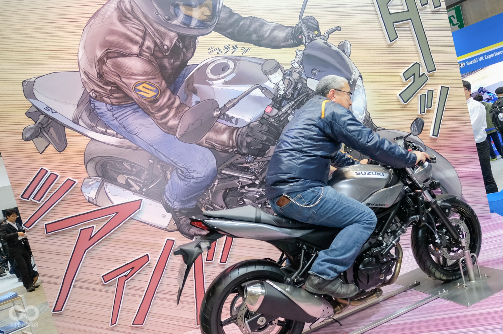 SUZIKI雖然未發表新車,但是已通過國內能耗檢驗的SUZUKI SV650X現場直接搭配熱血的漫畫背板展出。此外,將在明天發表的全新125cc級距速克達SUZUKI SWISH也在場展出,最後,MotoGP廠車單然也不會缺席,展區展示車輛從通勤到熱血車款一應俱全。