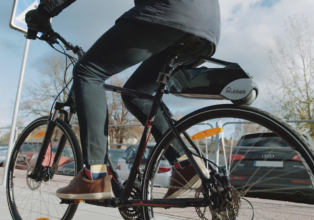 雖然在台灣騎乘自行車上下班的人不多,但或許有了這項商品之後你也可以改變你的通勤方式,因為Rubbee可以讓你的自行車無須要任何破壞式的改裝,就可以變身成電動助行車,透過他們研發出的機器裝在你的椅墊下方,並且利用滾輪摩擦你的後輪,幫助你在騎乘的過程當中更加省力,透過安裝在腳踏板為製的感知器,傳遞訊系給後方馬達所需提供的力道,這項系統的原理其實非常簡單,只是我們都沒想到而已。