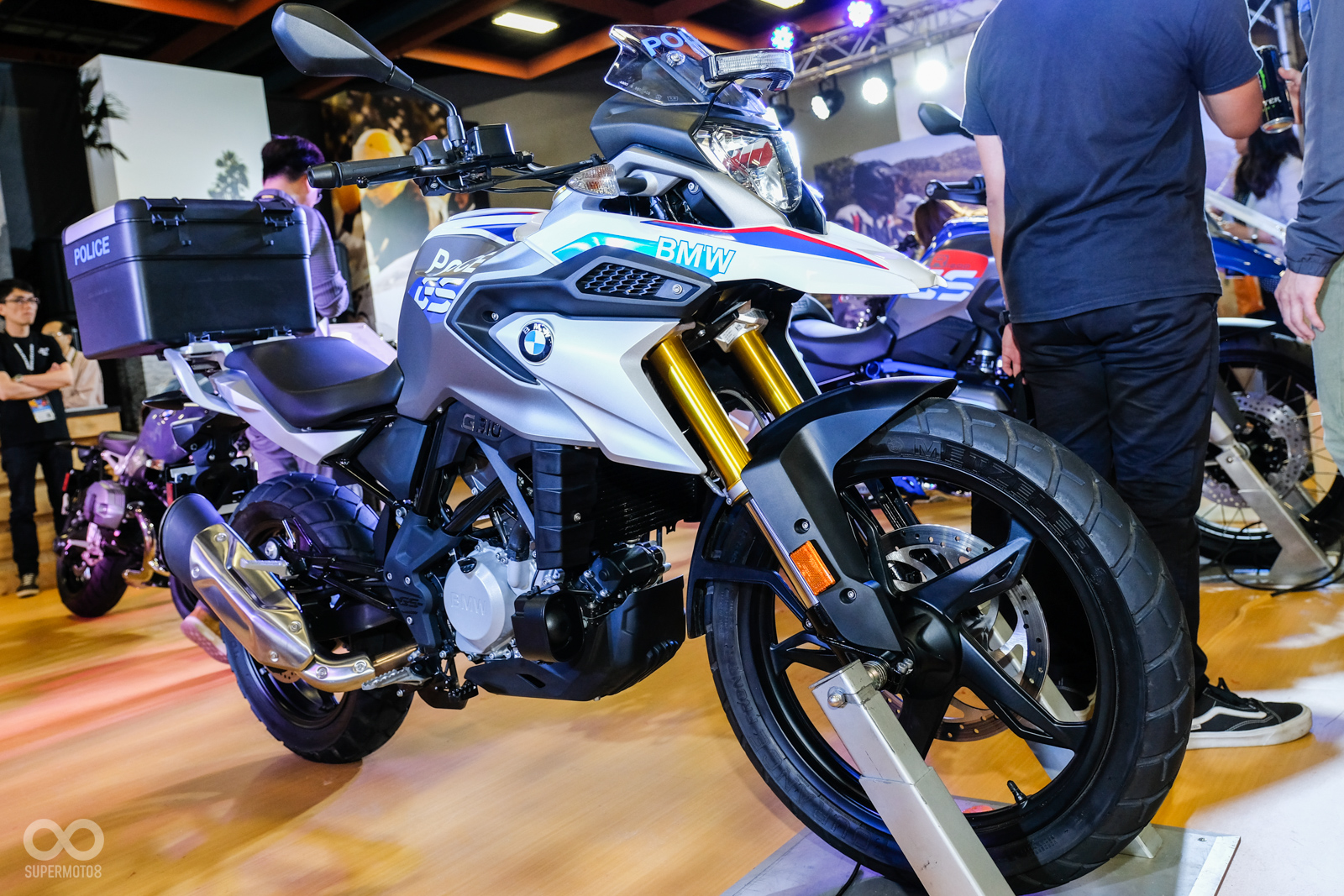 此外,在展場中悄悄擺放了G310 GS 警用車款,除了加裝前後報閃燈、警笛等基本警用配備外,帥氣的“POLICE”字樣可是讓G310 GS威風不少,原廠特別引進這輛車款或許是想爭取政府警車標案,或許未來有機會看到員警騎著輕巧的G310 GS在路上巡邏哦。