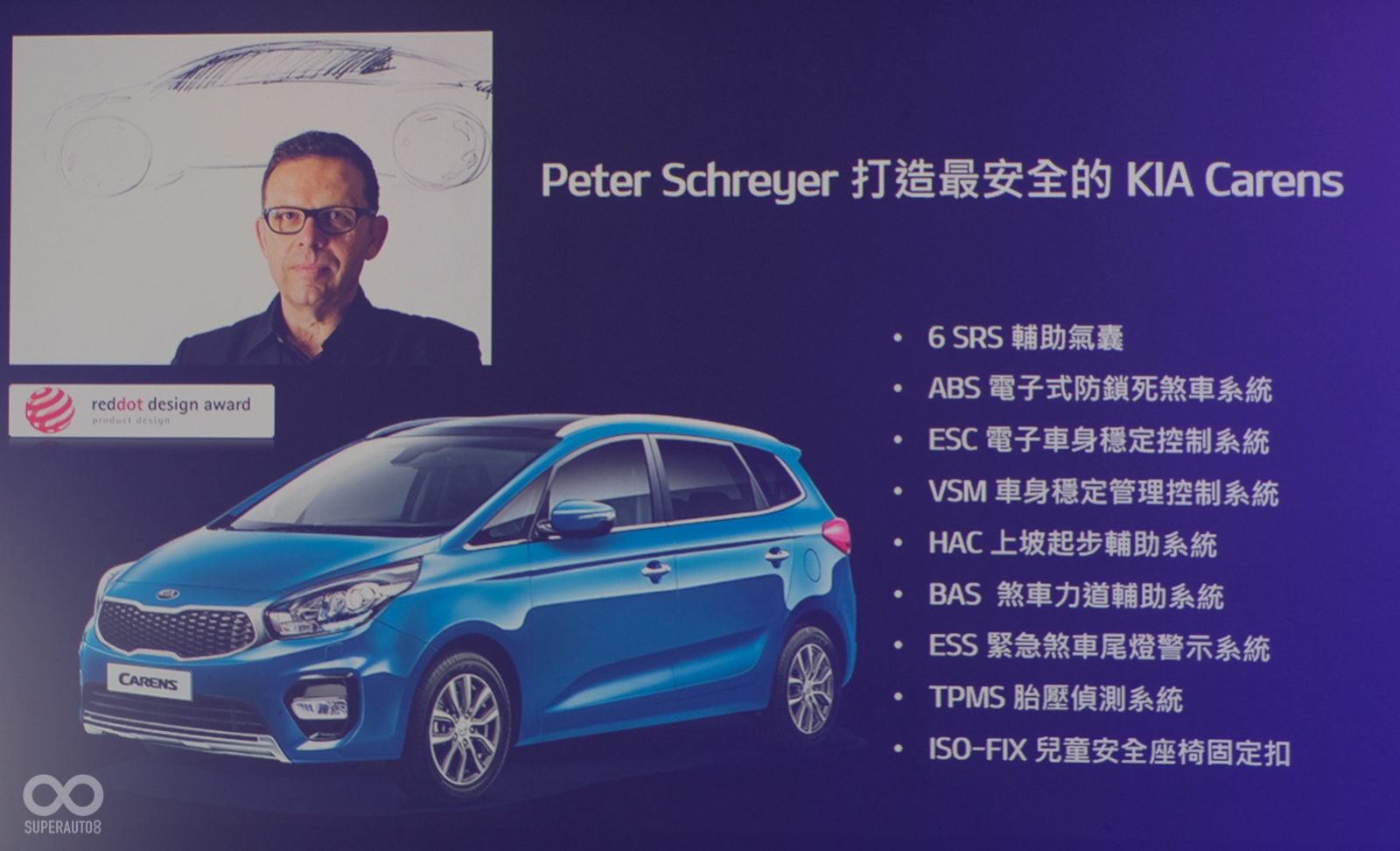 KIA台灣總代理森那美起亞汽車,帶著多款高C/P值車款重返台灣市場,短短3年期間,不僅屢屢在銷售成績與車主口碑中贏得正面肯定,更榮獲71屆金商獎優良外商殊榮。為回饋眾多KIA車主的想望,特別推出深受國內消費者喜愛的國產MPV ––Carens 「GO」帥特仕款,不但延續17項主、被動安全防護為全車系標準配備,更將CCD倒車顯影系統與BSD、RCTA、LCA三合一盲點偵測系統納入標配之列,同時,專屬外觀套件更提升Carens整體流暢性與動力美學,實為安全制霸且超級有型的MPV。