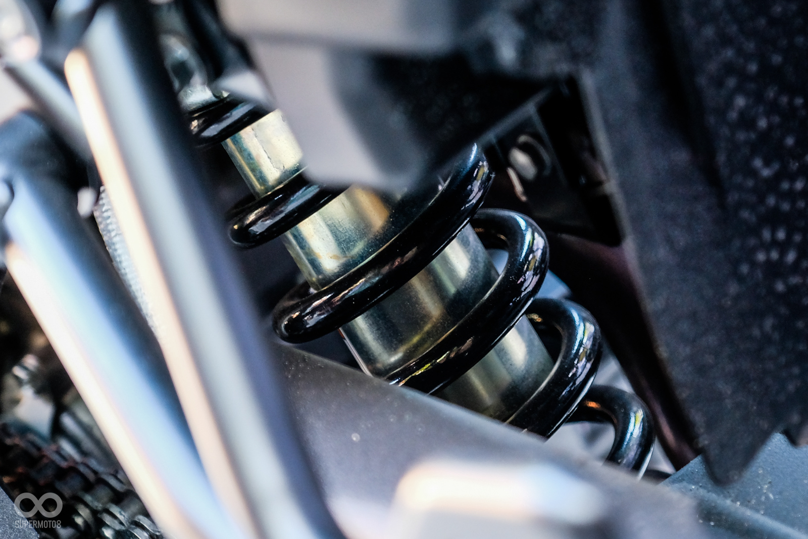 椅墊也是SV650X提升細節質感的一大重點,改用雙色的毛毛蟲椅墊除了讓車輛有了更濃厚的咖啡味,黑、灰雙色配置與坐墊中央的綁帶結合車尾造型,從遠處看去讓人有著單座造型的錯覺。