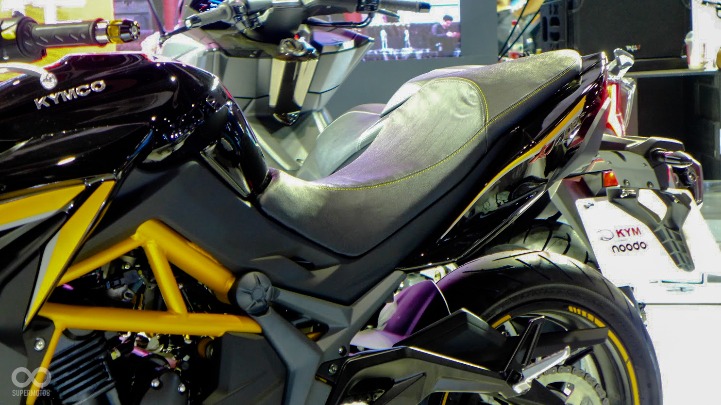 以街車外型打造的K-Rider400承襲AK550上頭的頂規配備設定,從現場的展示車可以看見街車造型的設計下有著金屬編織車架,並且在內部藏有400c.c.左右的並列雙缸引擎,雖然目前並未公布確切的動力數據,但根據目前的謠言判斷,這顆引擎可能是來自於KAWASAKI。