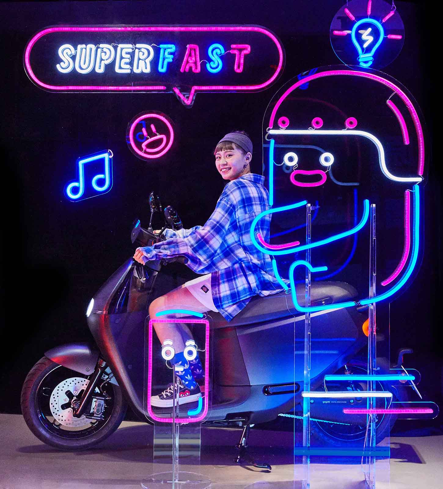 為搭配 Gogoro S2 最新車款的展示,Gogoro 推出以「Gogoro 新朋友」為主題的光采霓虹藝術櫥窗,包含電池小綠人、耀眼兄弟、貼心閨密三種造型,邀請消費者走進店面櫥窗輕鬆體驗帥氣破表的「撩妹神車」,在創意風格的點綴中,成為城市街頭風景的一部分。六月底前來店體驗試乘,拍照打卡 #letsgogoro,就有機會抽到 S PERFORMANCE - 黑暗騎士安全帽。