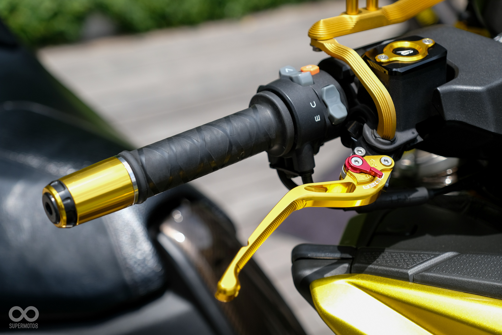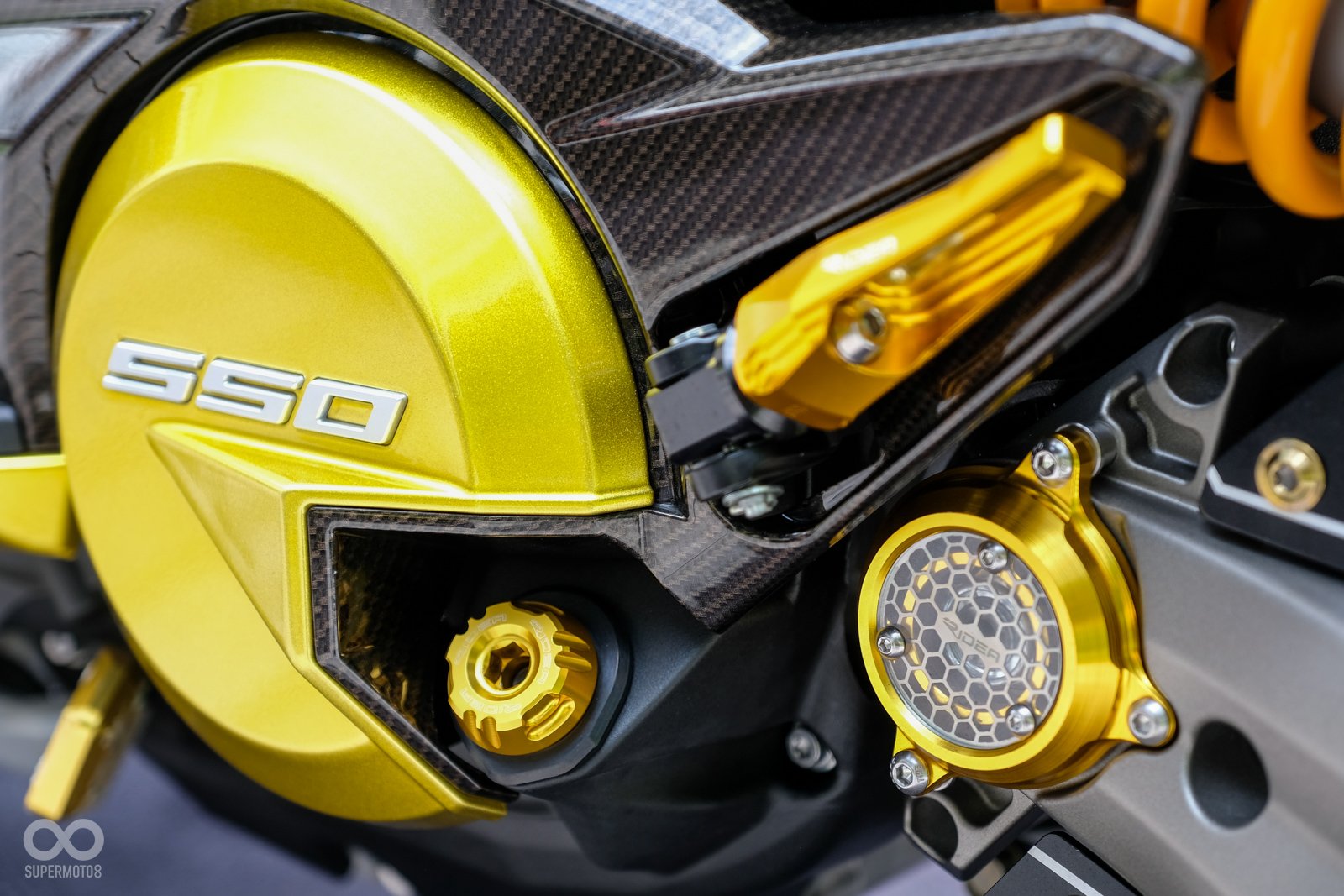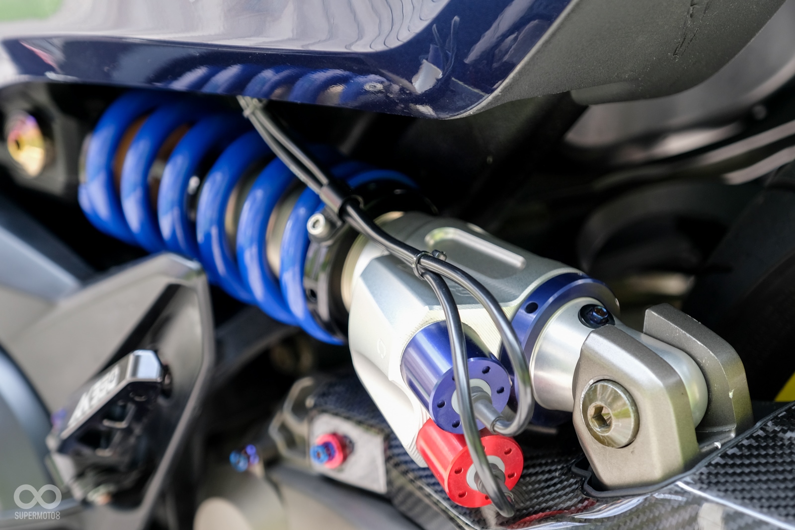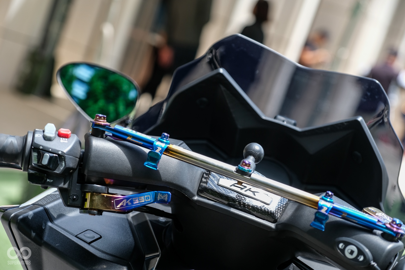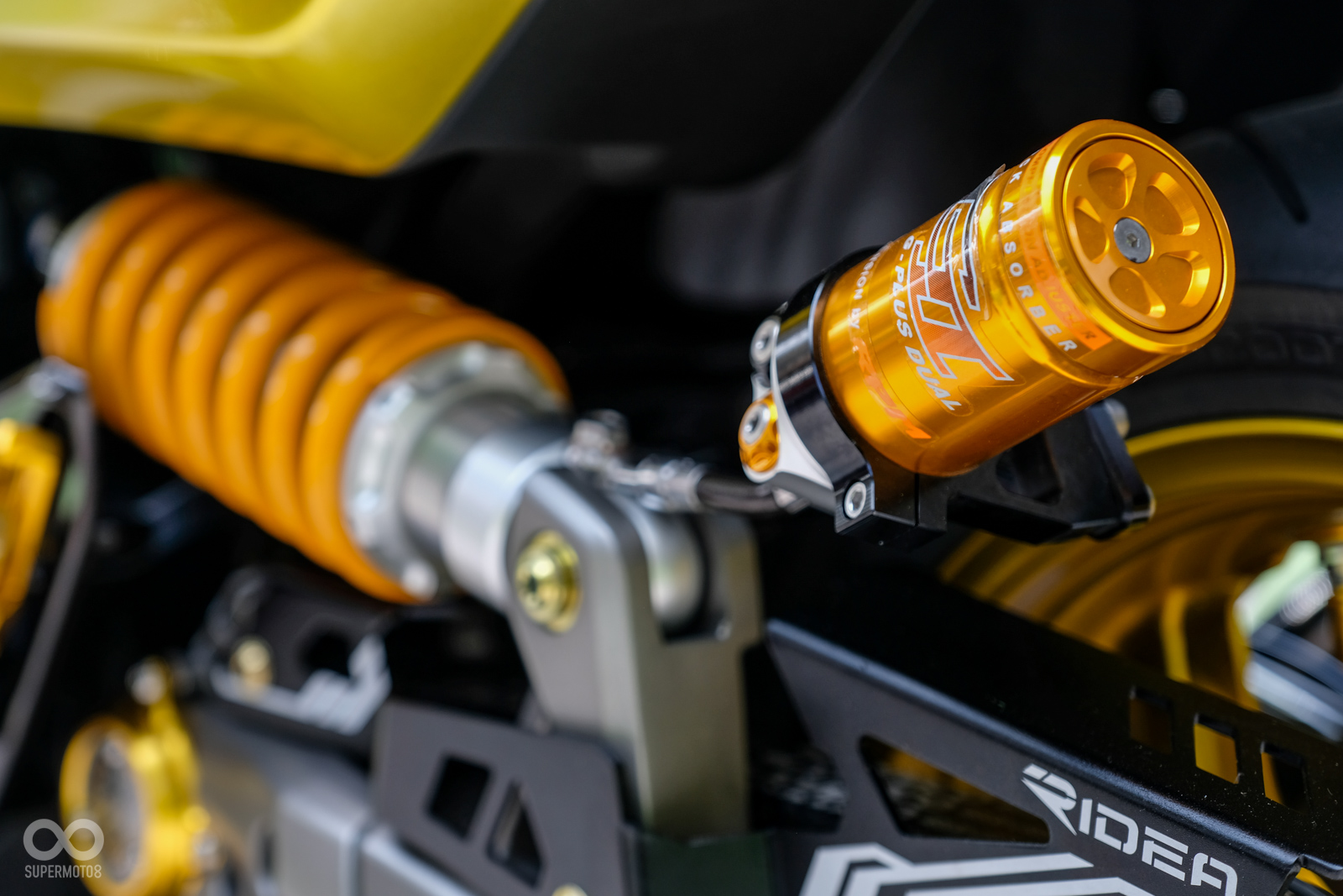 為了呼應車輛的金色烤漆煞車拉桿、握把,後避震器改用RPM專為AK550所生產的避震器,加上車上相當多RIDEA外觀部品與車色搭配。
