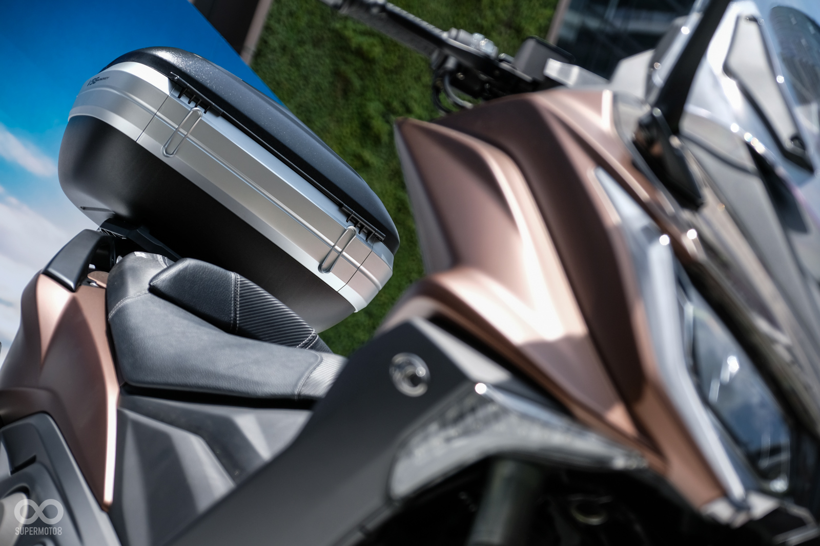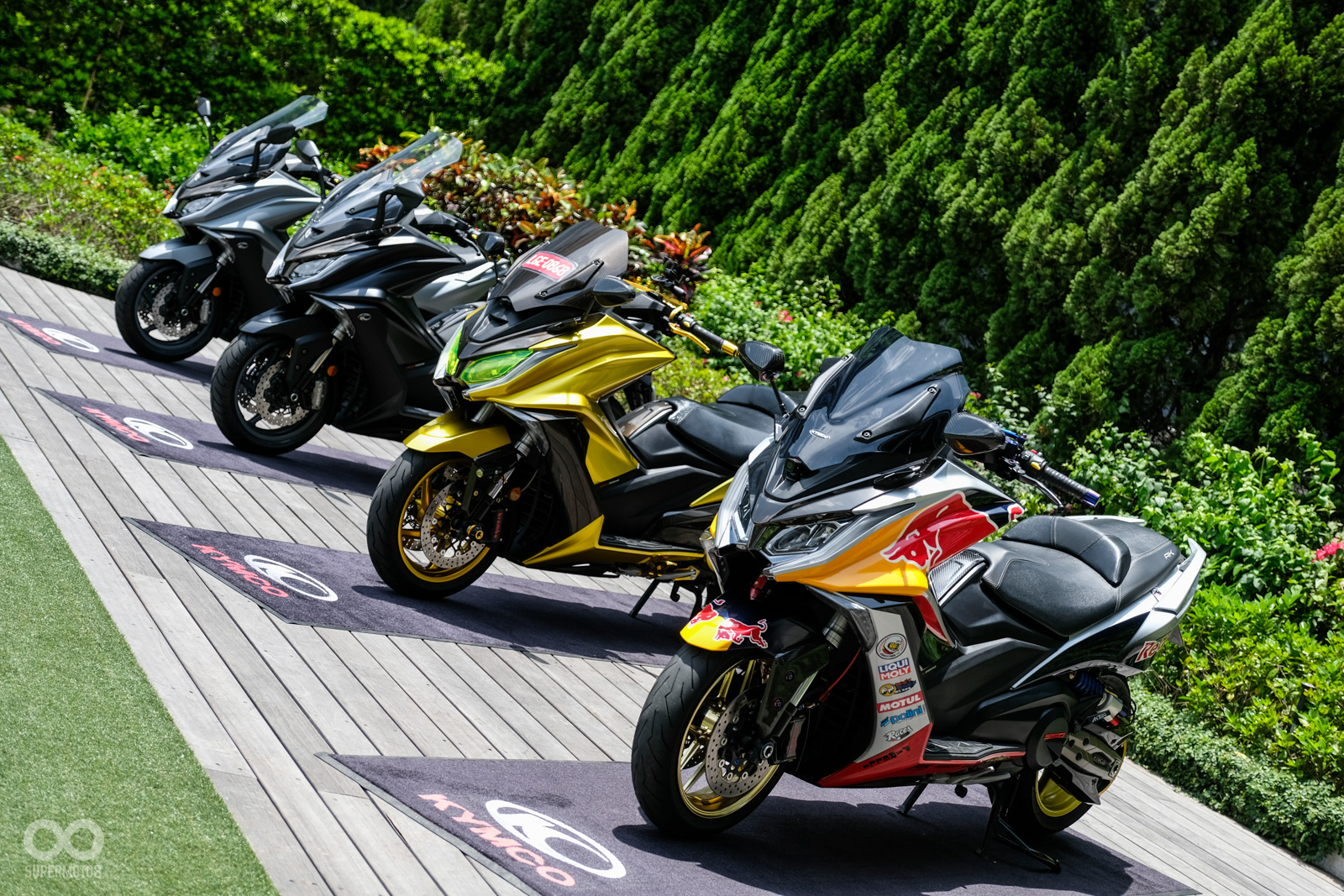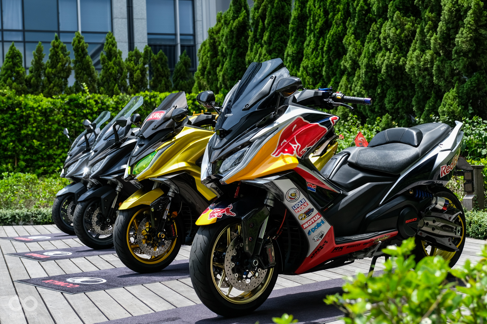 為了本次活動,KYMCO也在萬豪酒店頂樓的空中花園準備車輛供媒體拍攝,現場擺放GDink 300i以及AK550兩位主角,也同場展出購車禮GIVI行李箱,並有實際安裝的車輛提供拍攝,一旁也擺放了兩輛經過改裝的AK550供媒體拍攝,對於熱血車主來說,AK550的改裝品也相當豐富。