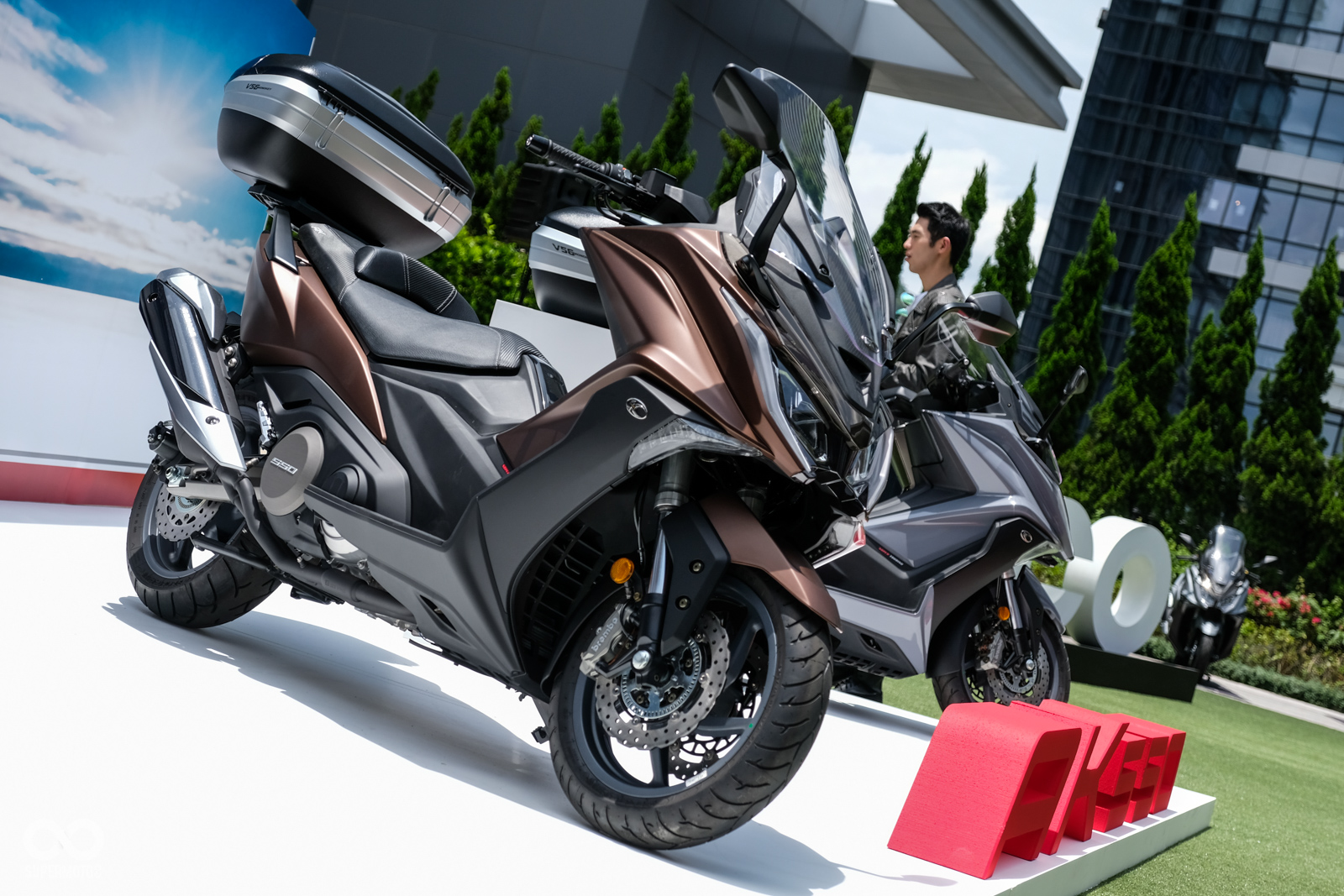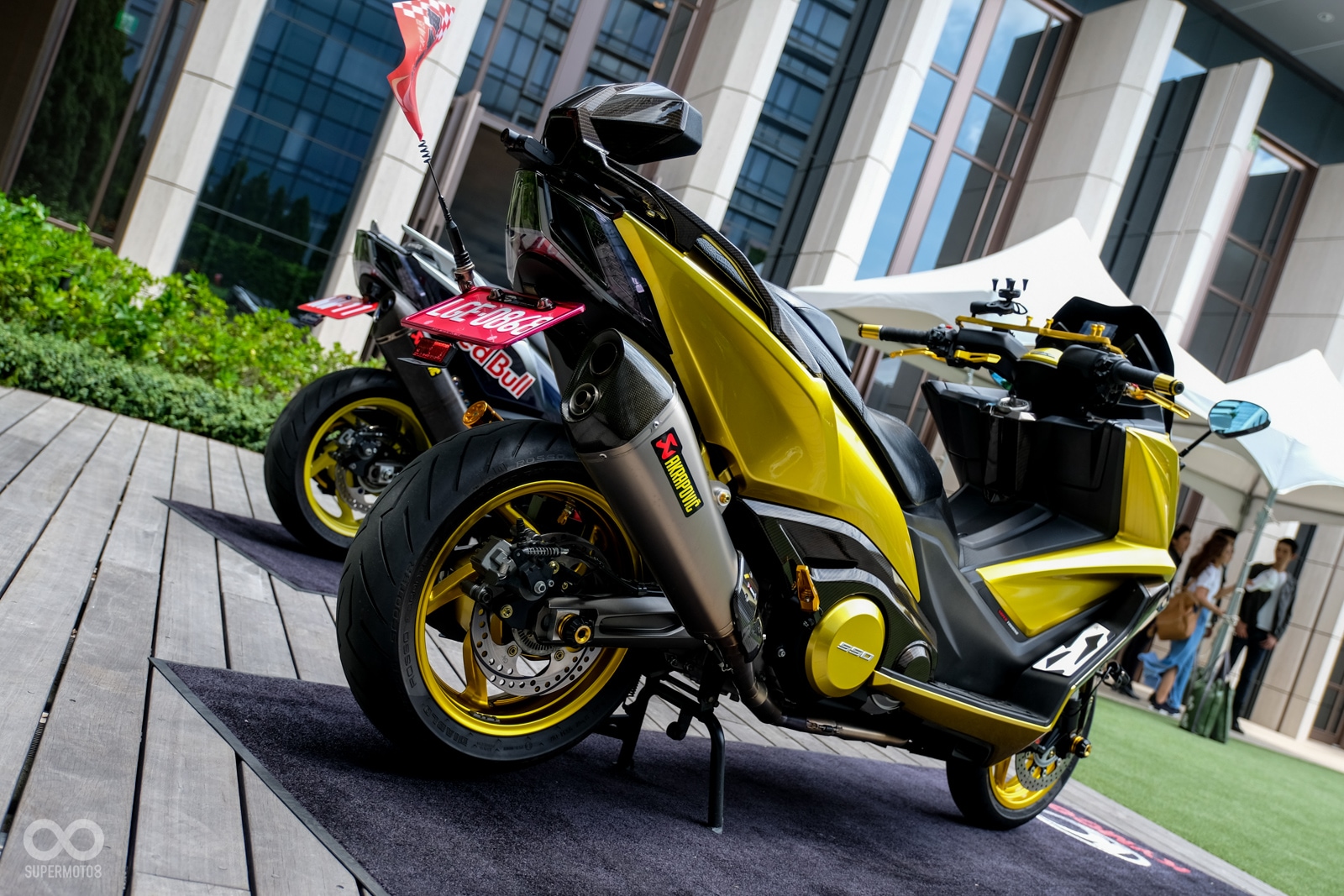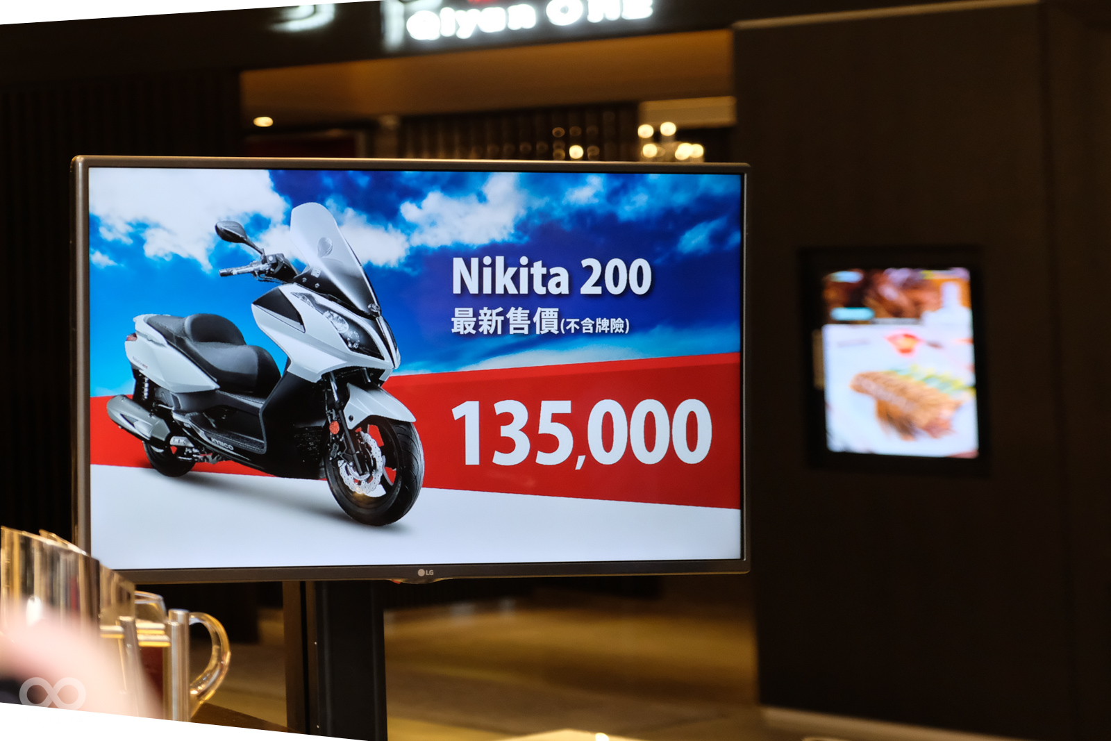 為了本次活動,KYMCO也在萬豪酒店頂樓的空中花園準備車輛供媒體拍攝,現場擺放GDink 300i以及AK550兩位主角,也同場展出購車禮GIVI行李箱,並有實際安裝的車輛提供拍攝,一旁也擺放了兩輛經過改裝的AK550供媒體拍攝,對於熱血車主來說,AK550的改裝品也相當豐富。
